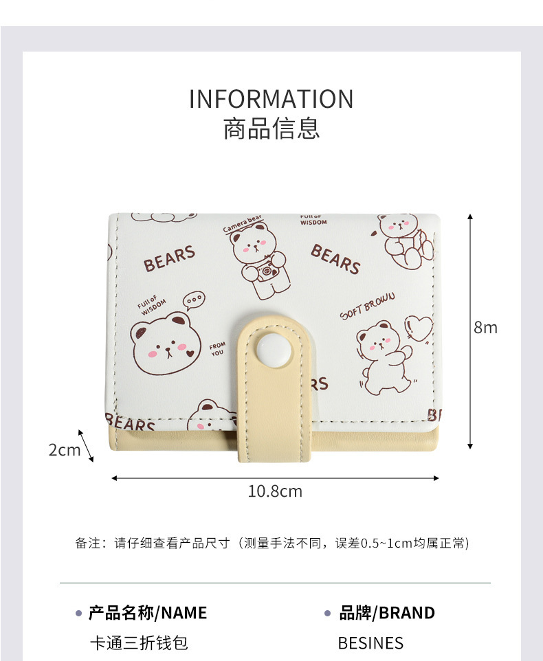 한국 스타일 여성 지갑 소녀의 지갑 짧은 만화 귀여운 멀티 카드 동전 지갑 지갑 지갑 지갑 도매