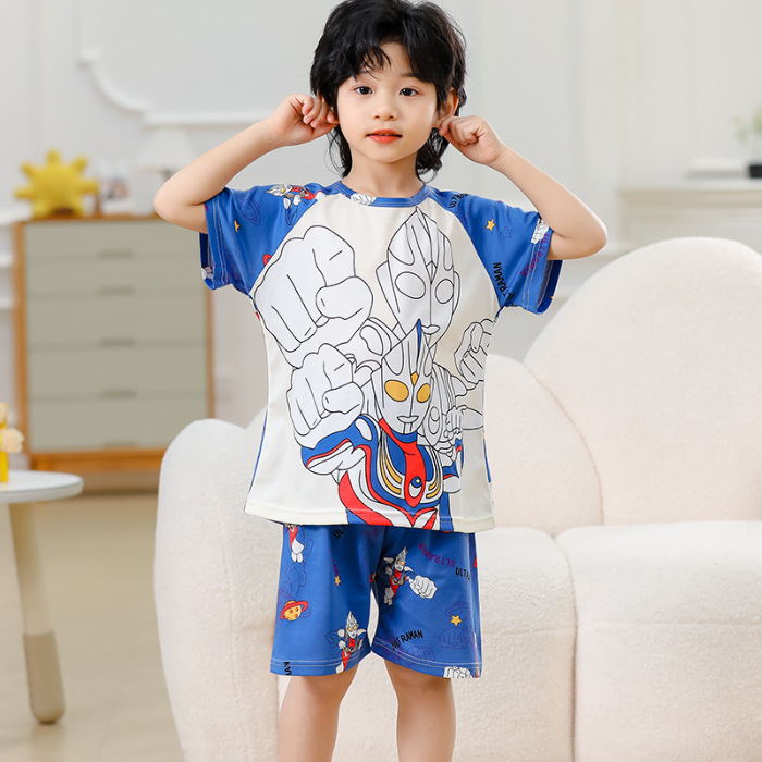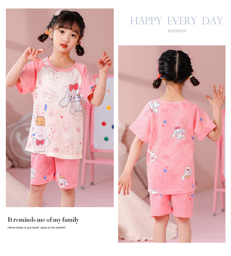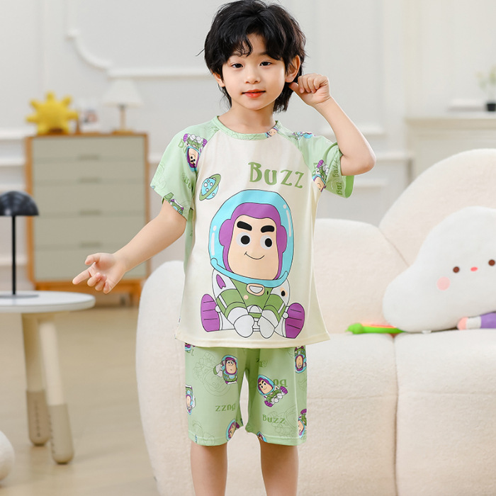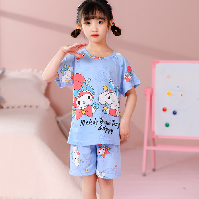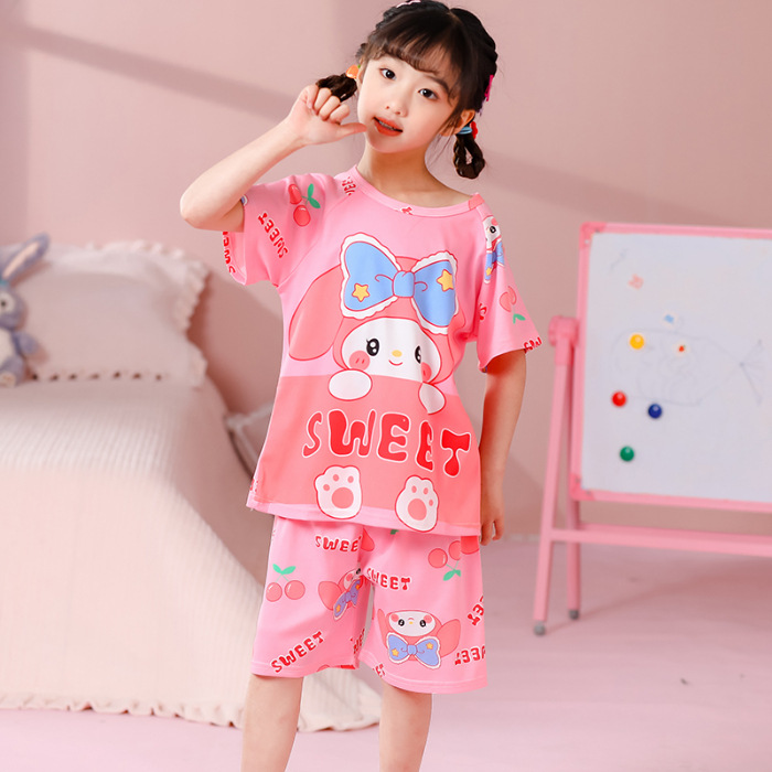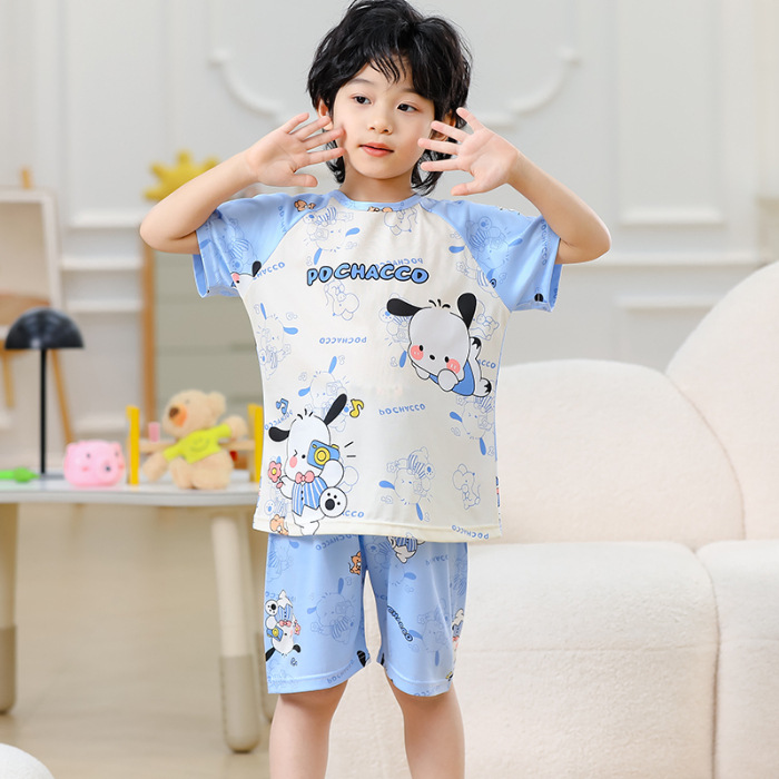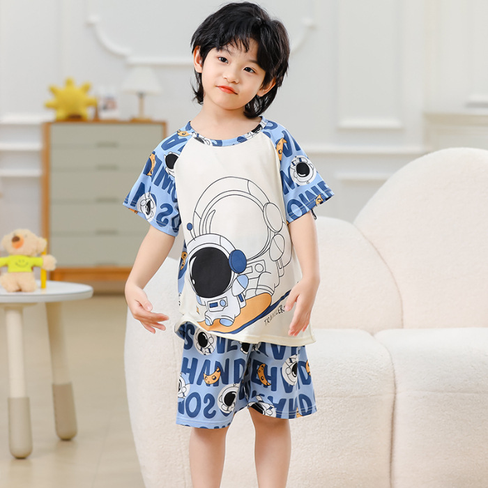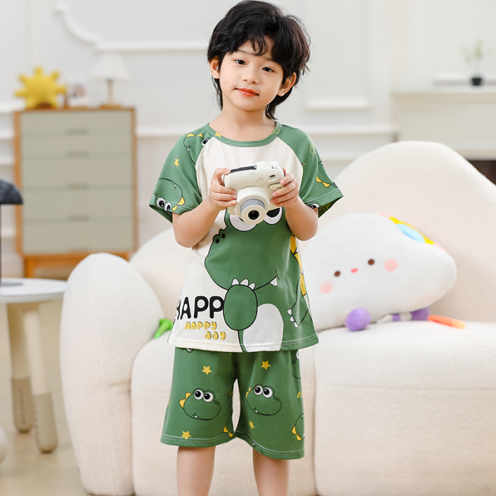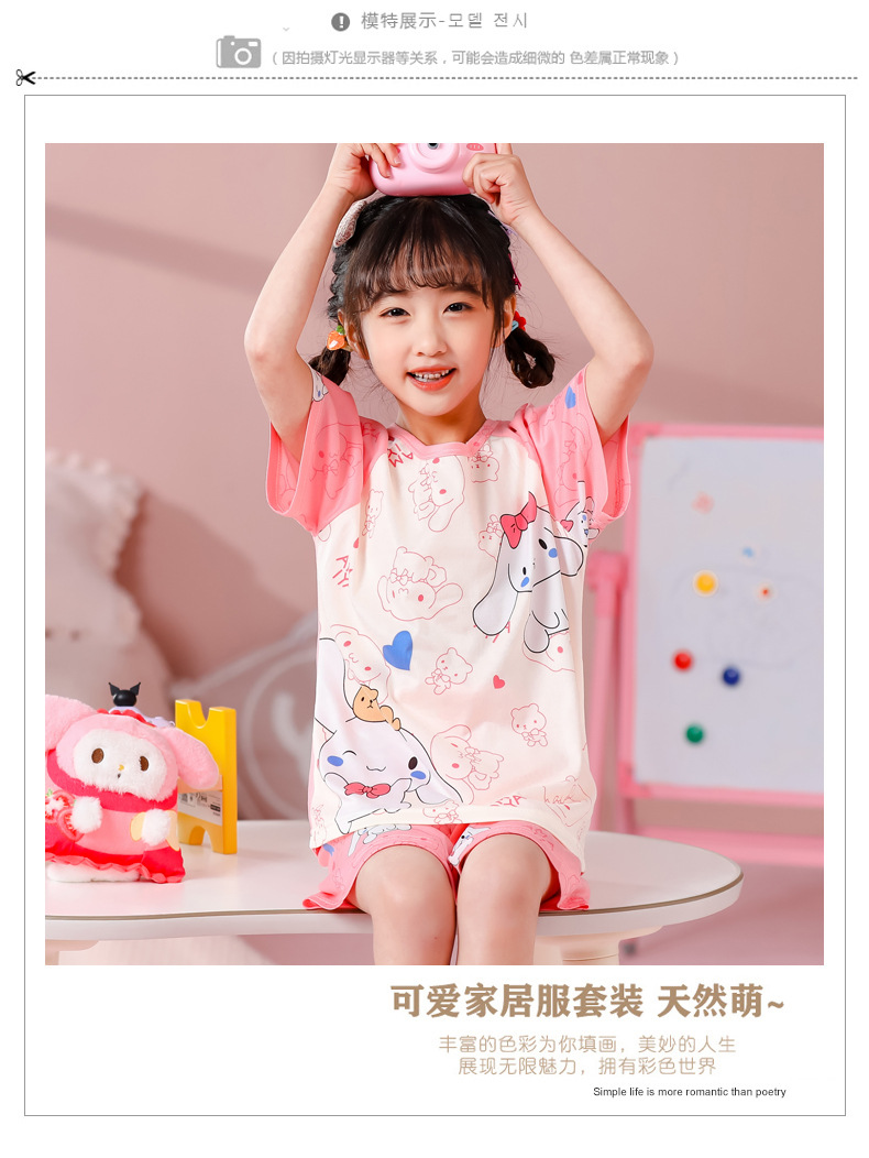 동남아 어린이 파자마 반팔 남학생과 여학생 만화 중학생 둥근 목 여름 에어컨 세트