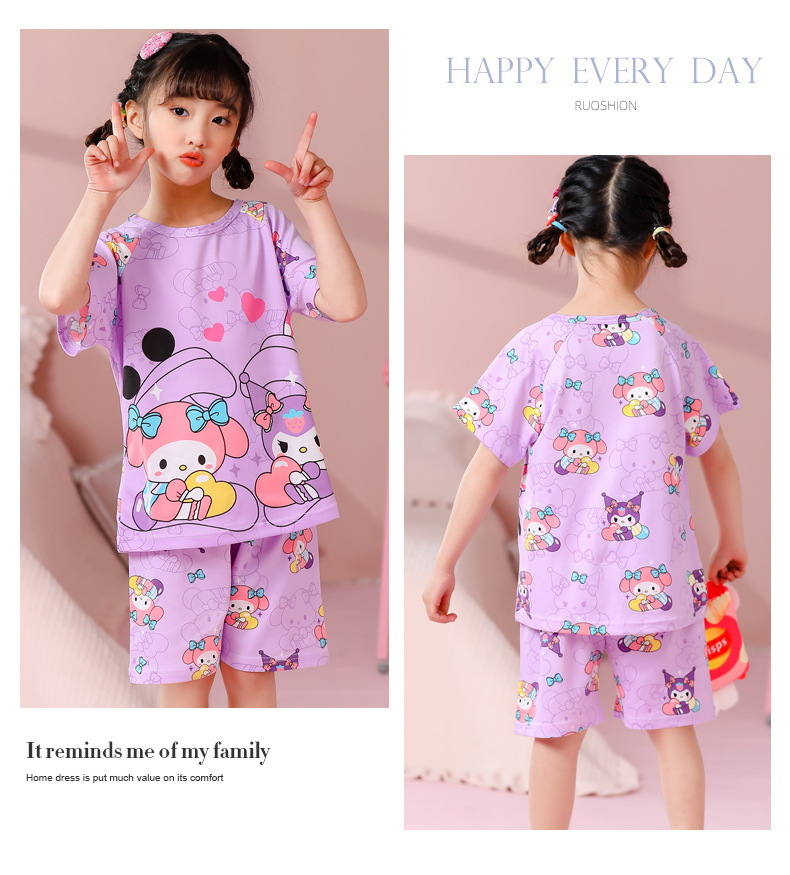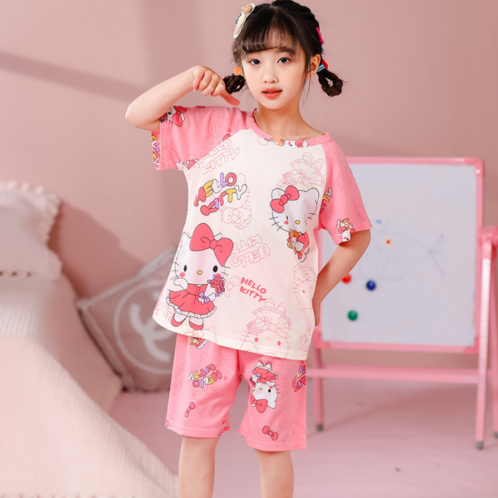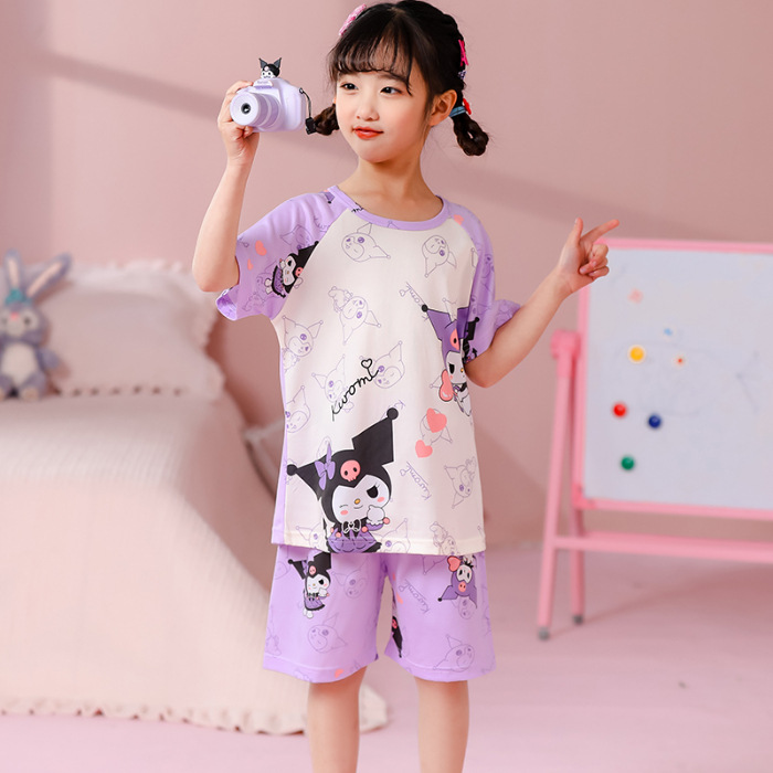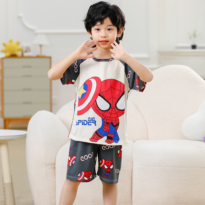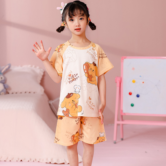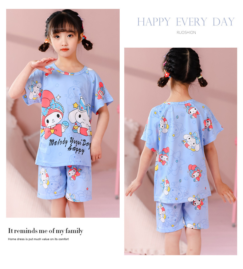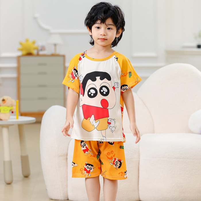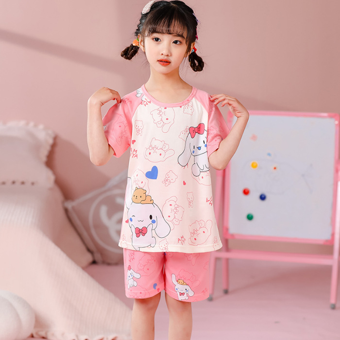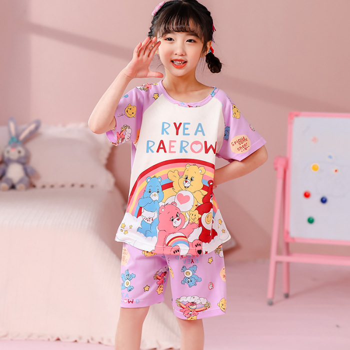 동남아 어린이 파자마 반팔 남학생과 여학생 만화 중학생 둥근 목 여름 에어컨 세트