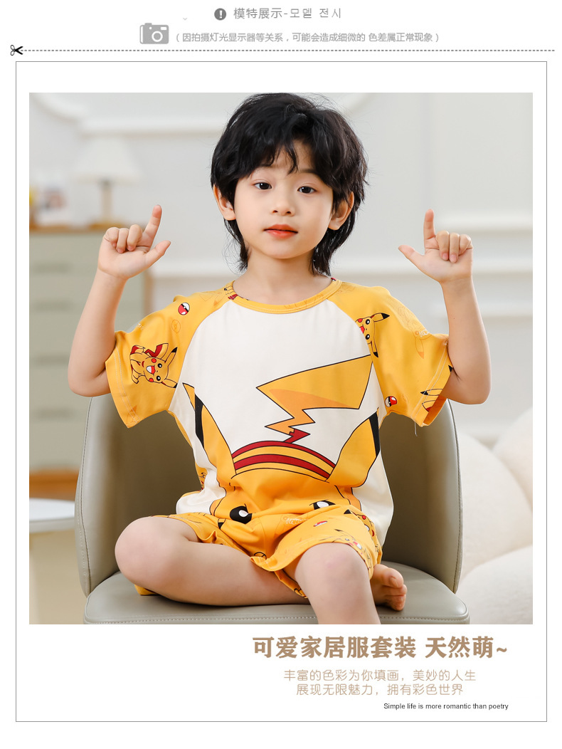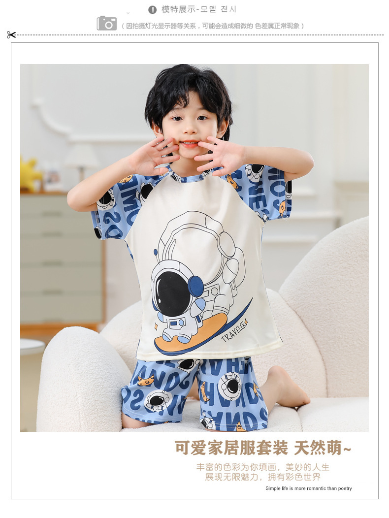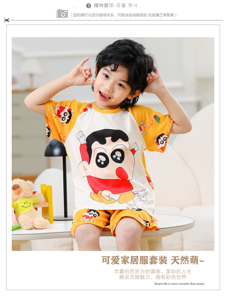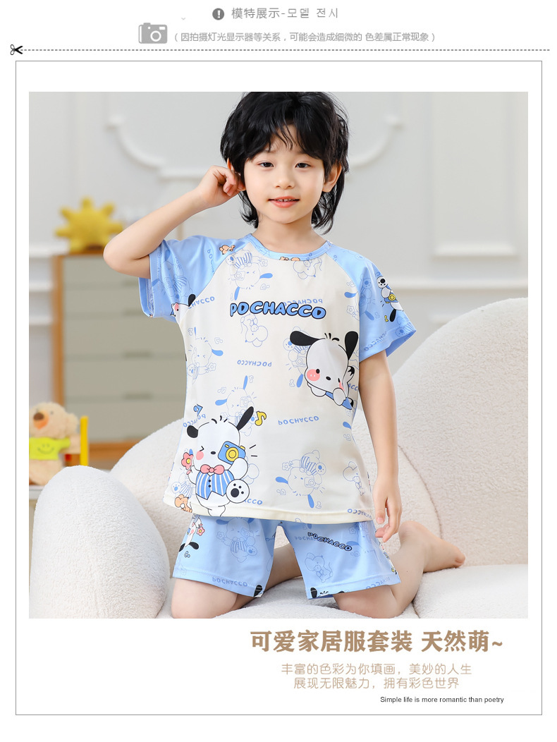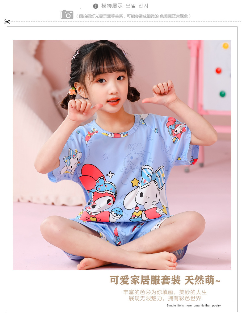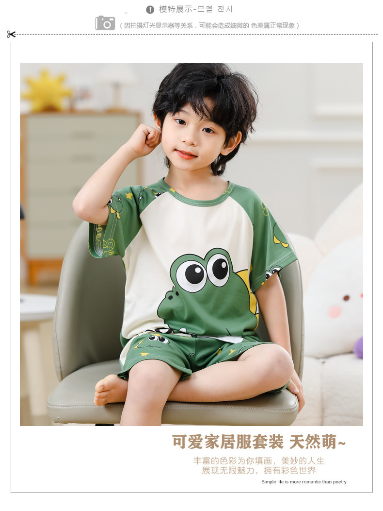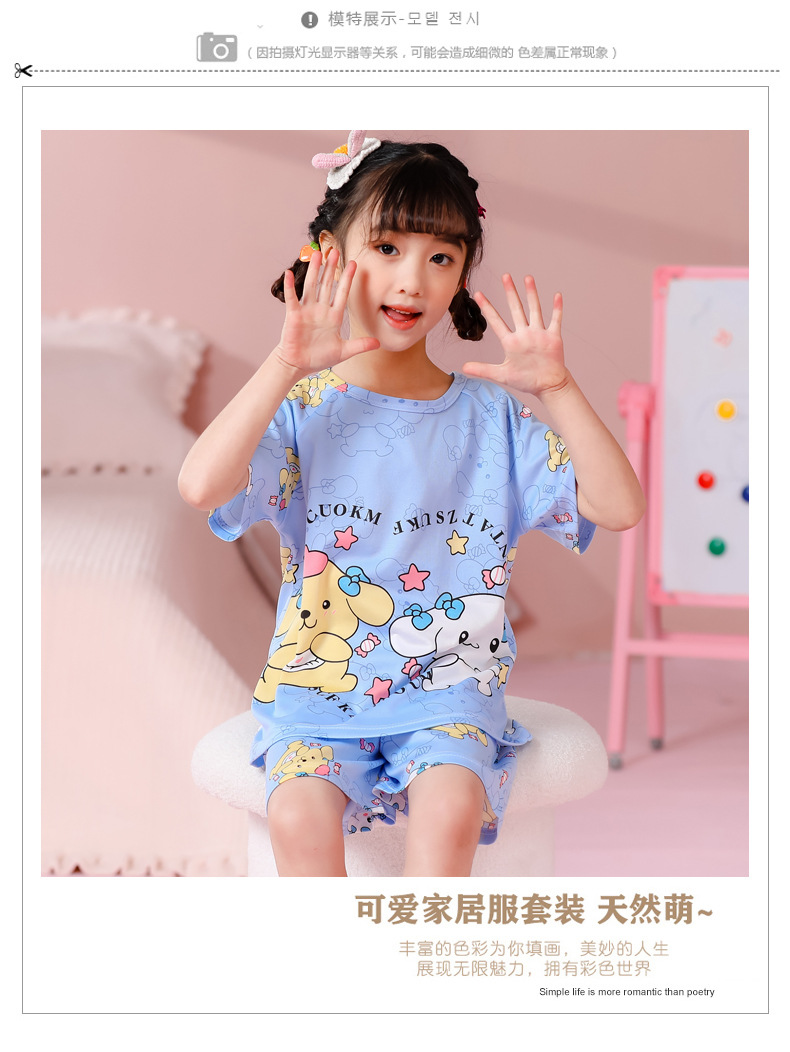 동남아 어린이 파자마 반팔 남학생과 여학생 만화 중학생 둥근 목 여름 에어컨 세트스토어 가기