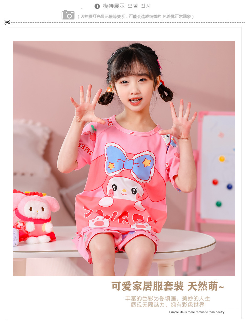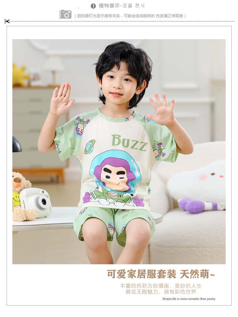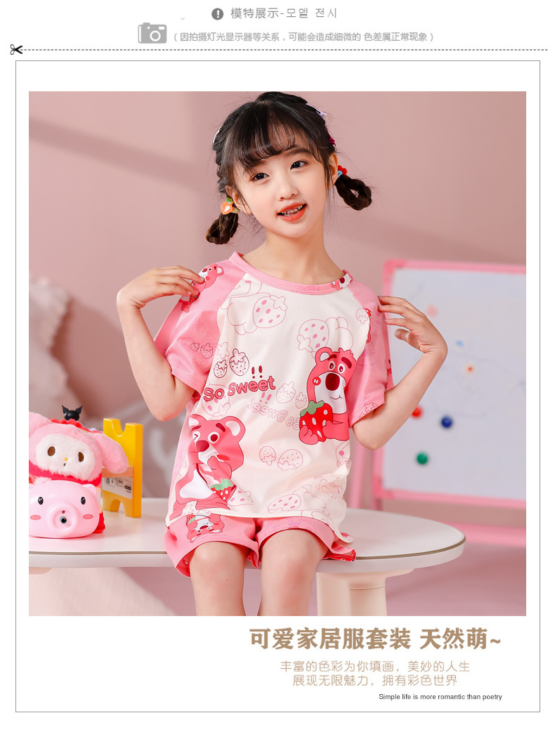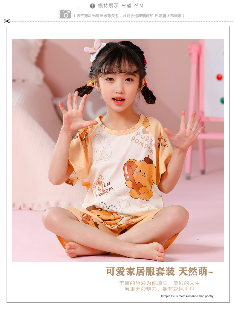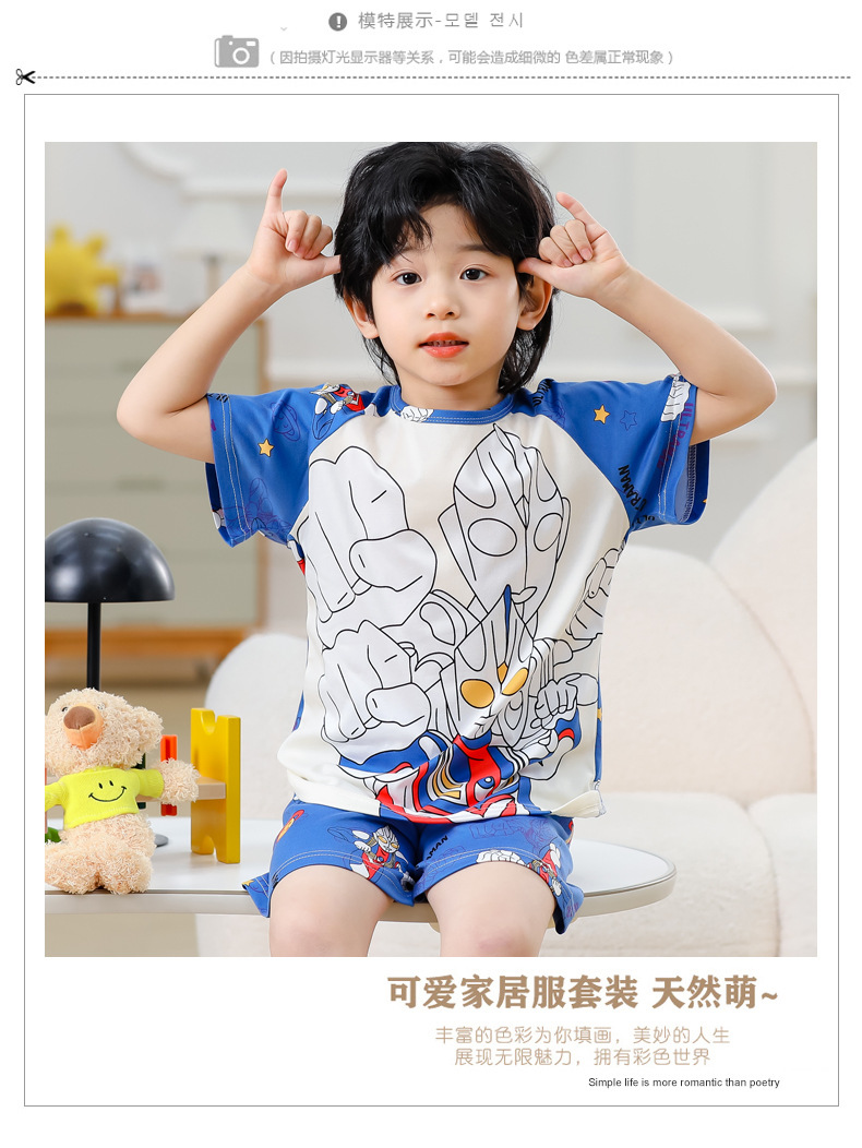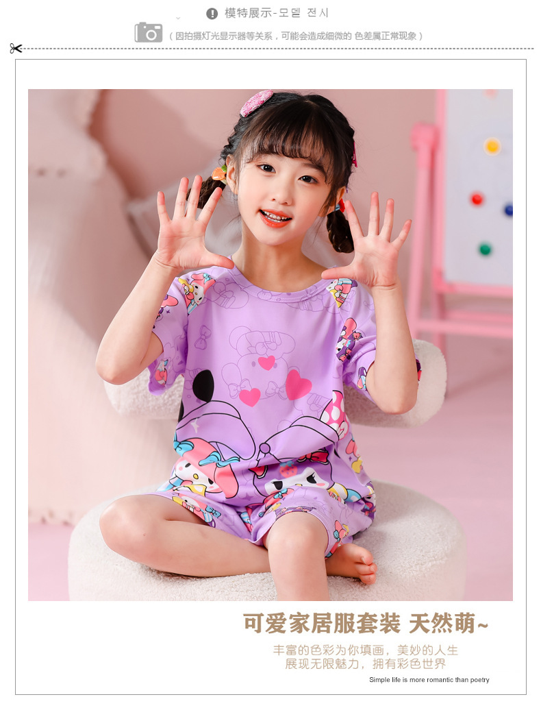동남아 어린이 파자마 반팔 남학생과 여학생 만화 중학생 둥근 목 여름 에어컨 세트스토어 가기