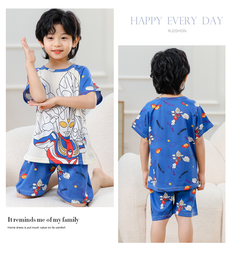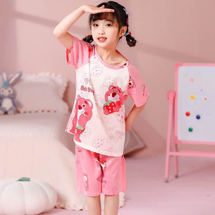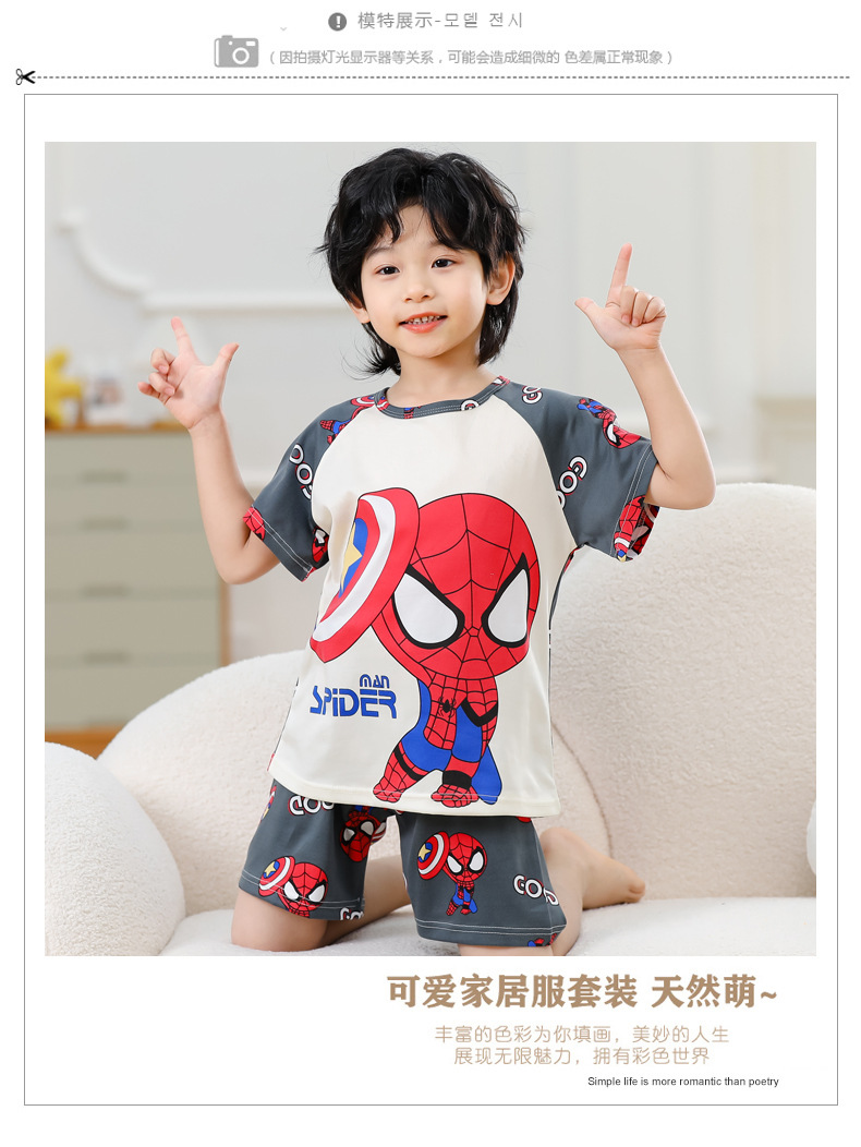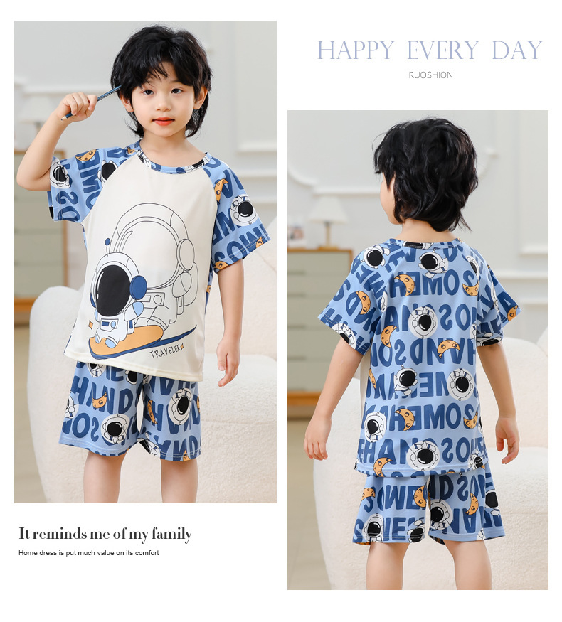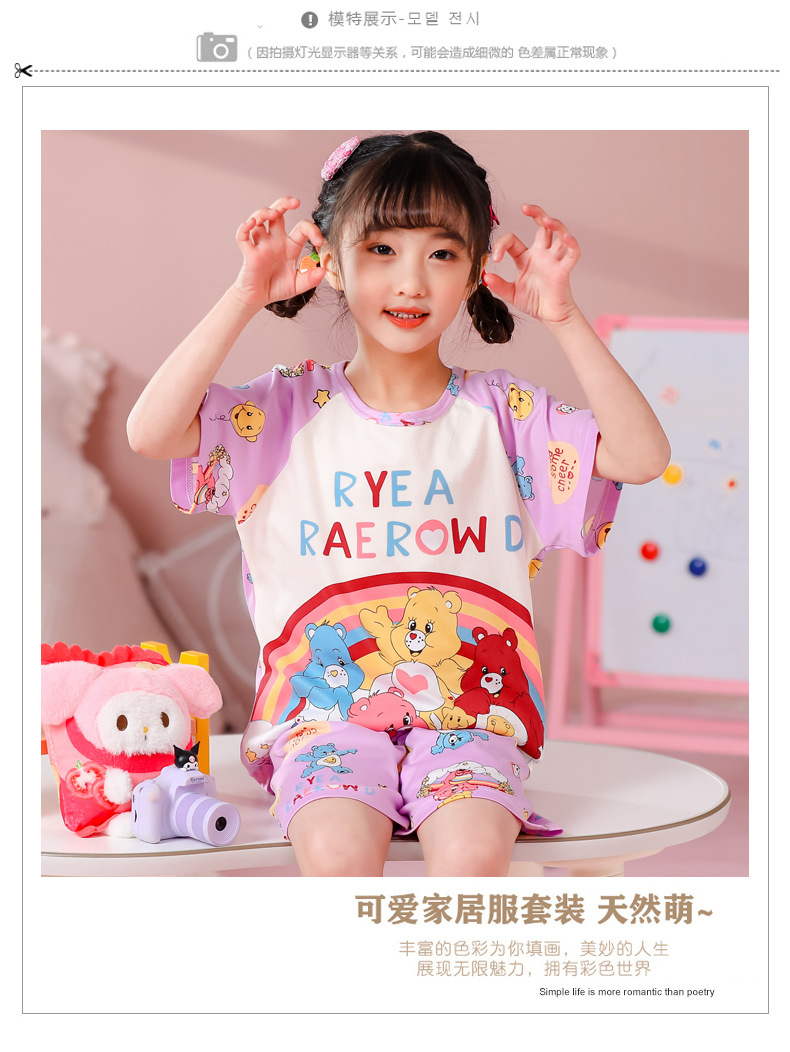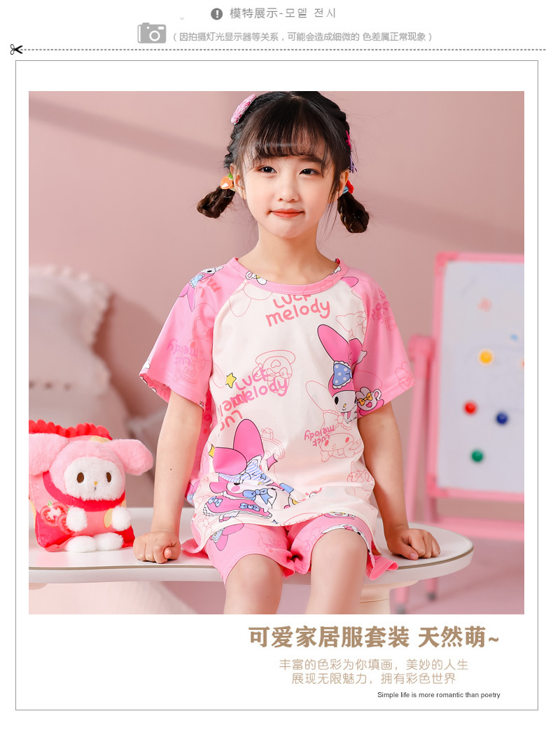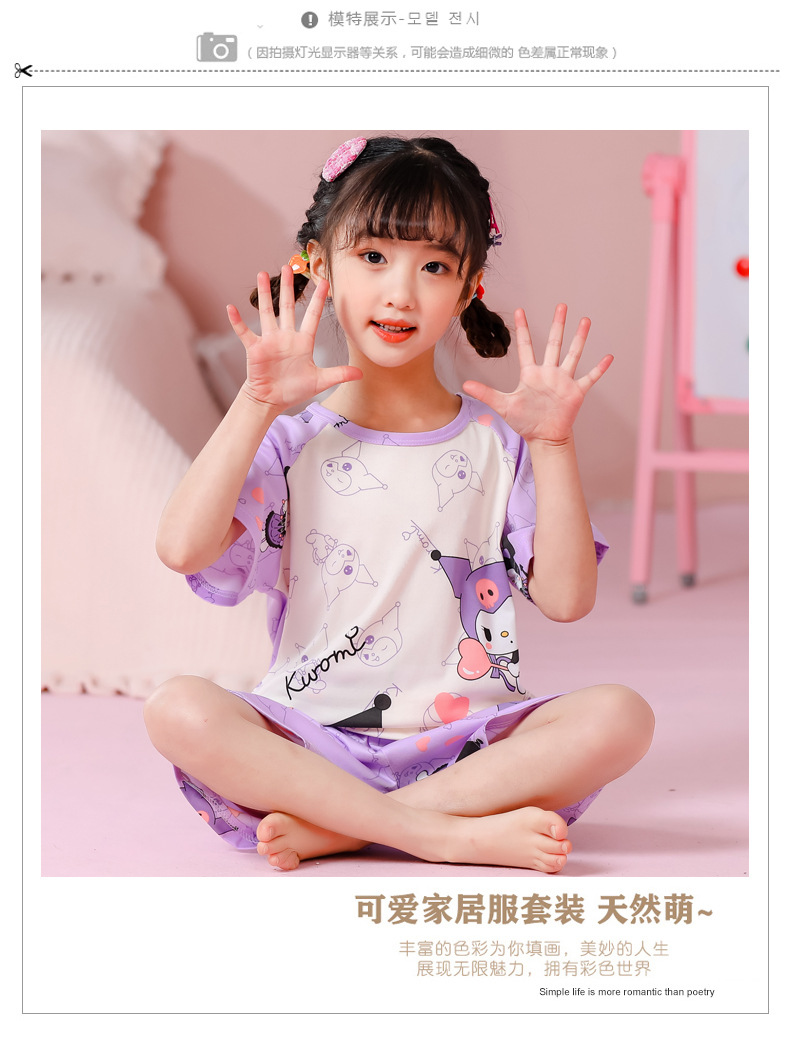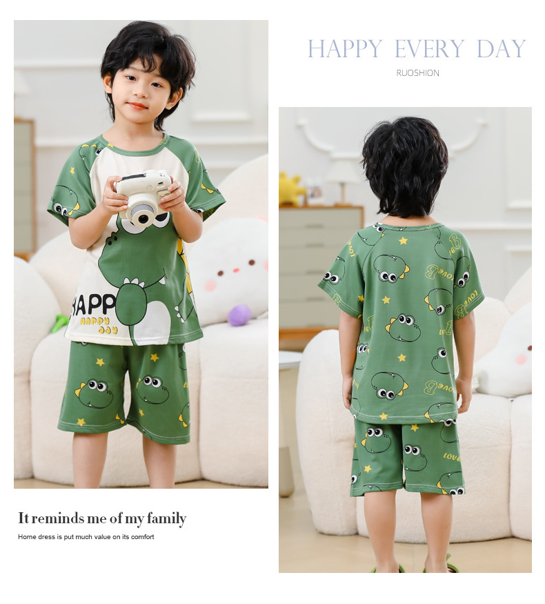 동남아 어린이 파자마 반팔 남학생과 여학생 만화 중학생 둥근 목 여름 에어컨 세트스토어 가기