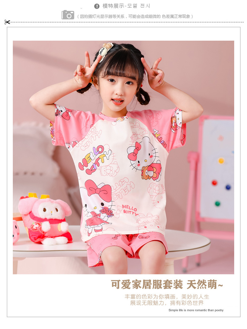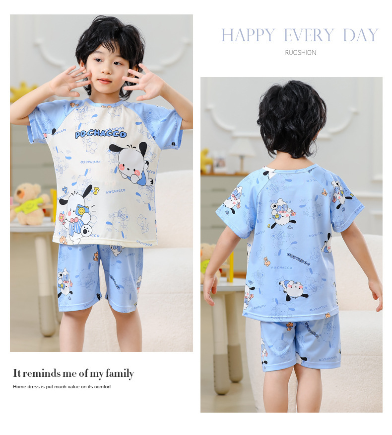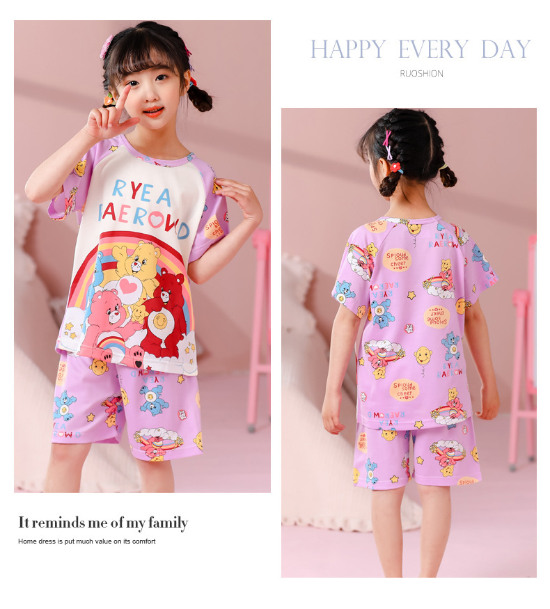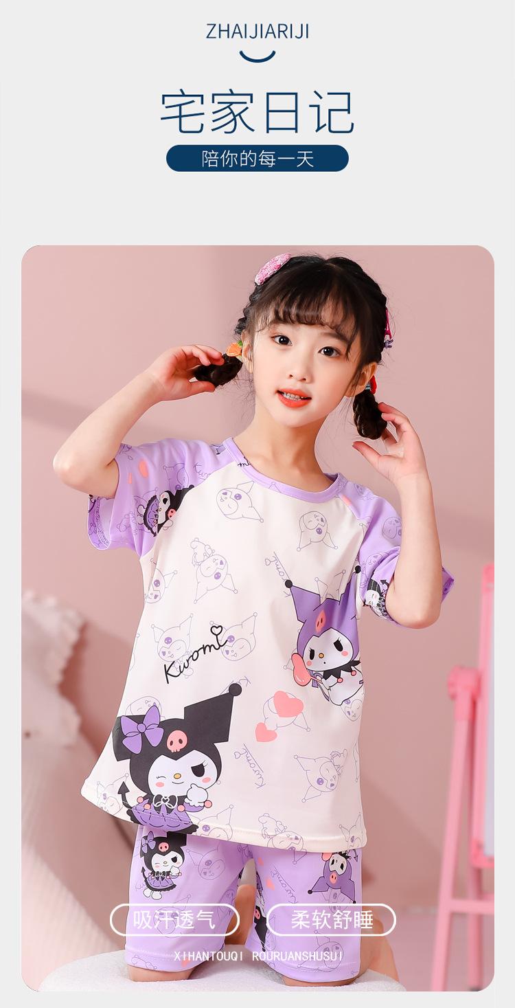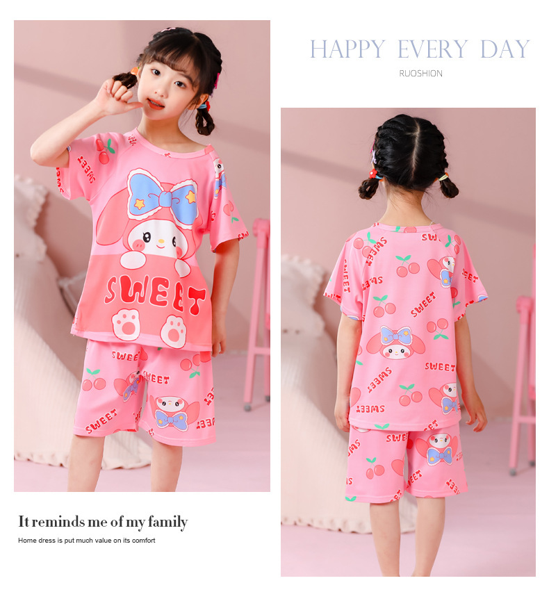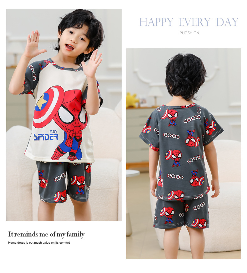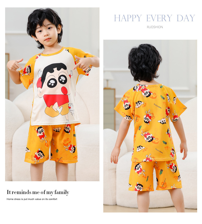 동남아 어린이 파자마 반팔 남학생과 여학생 만화 중학생 둥근 목 여름 에어컨 세트스토어 가기