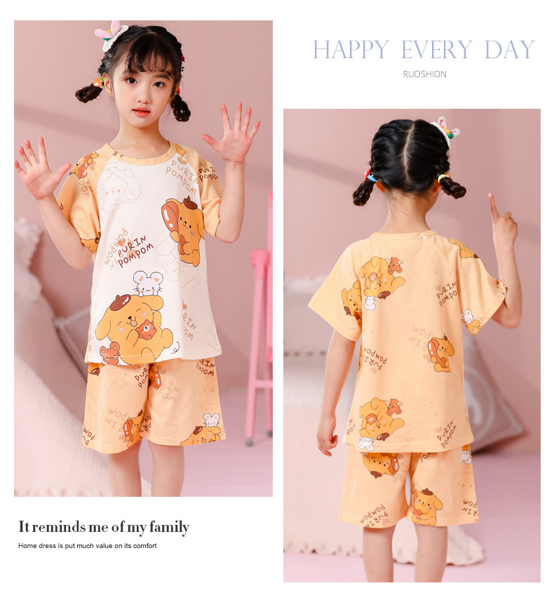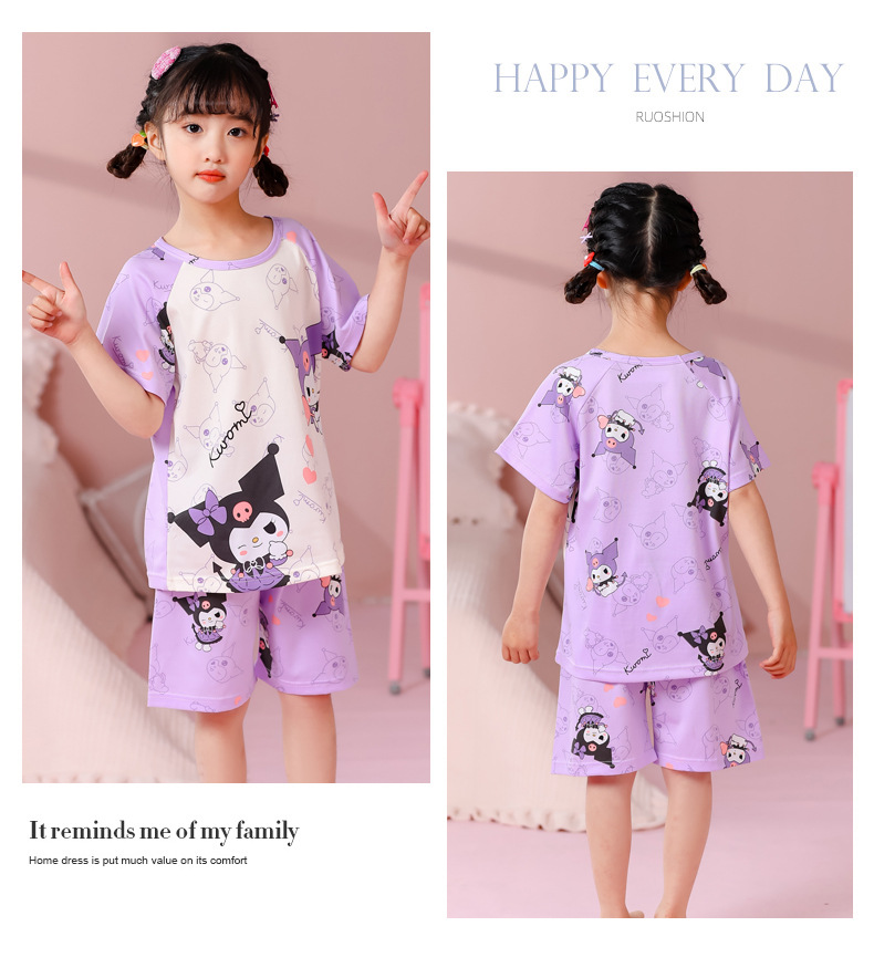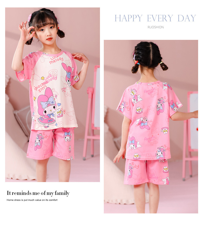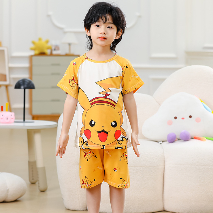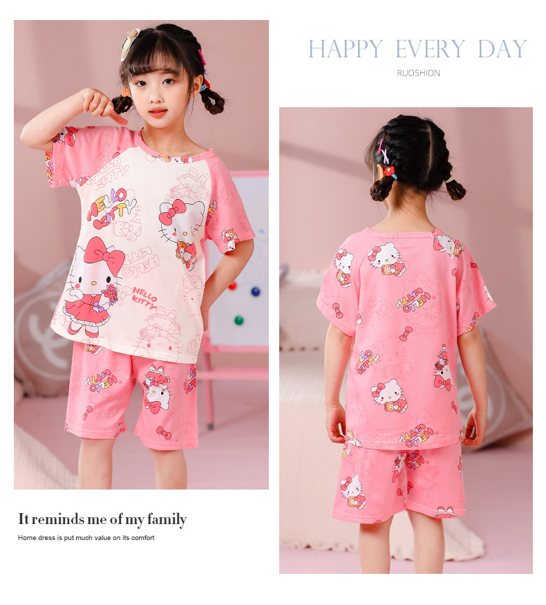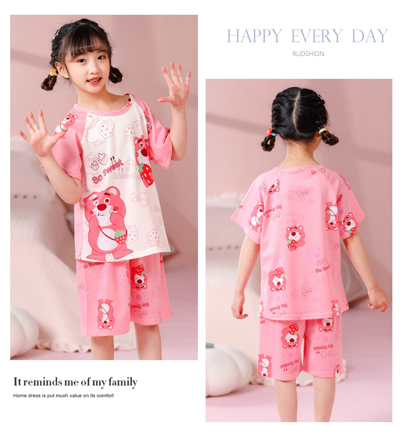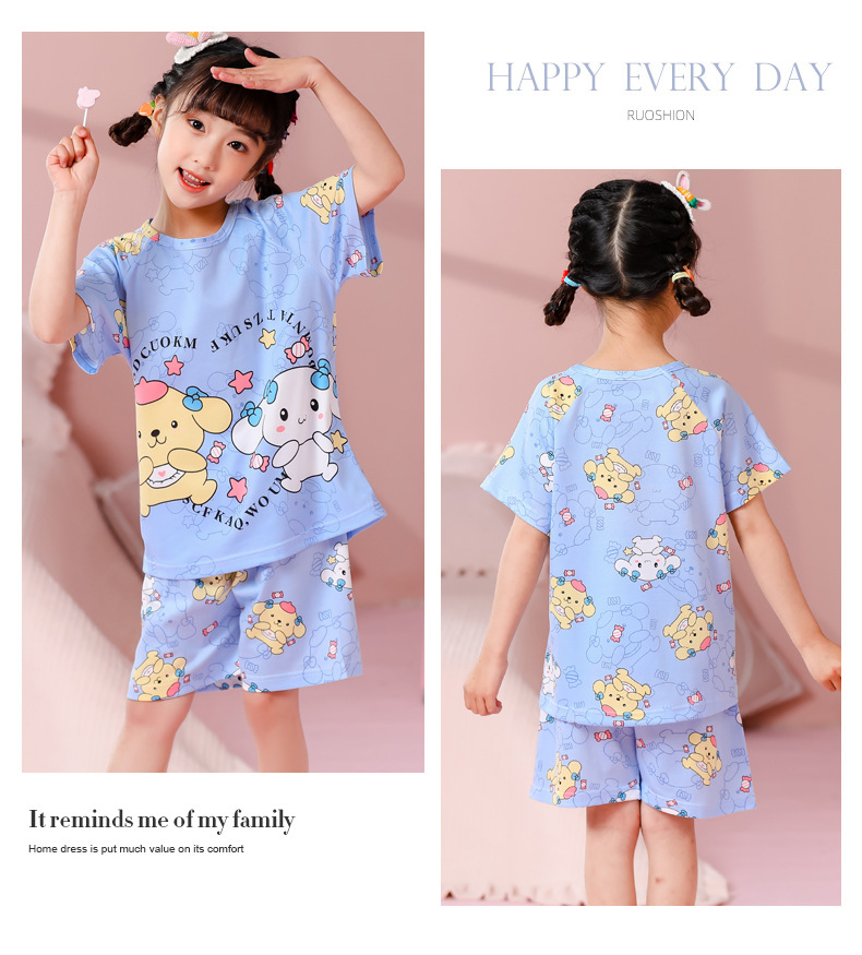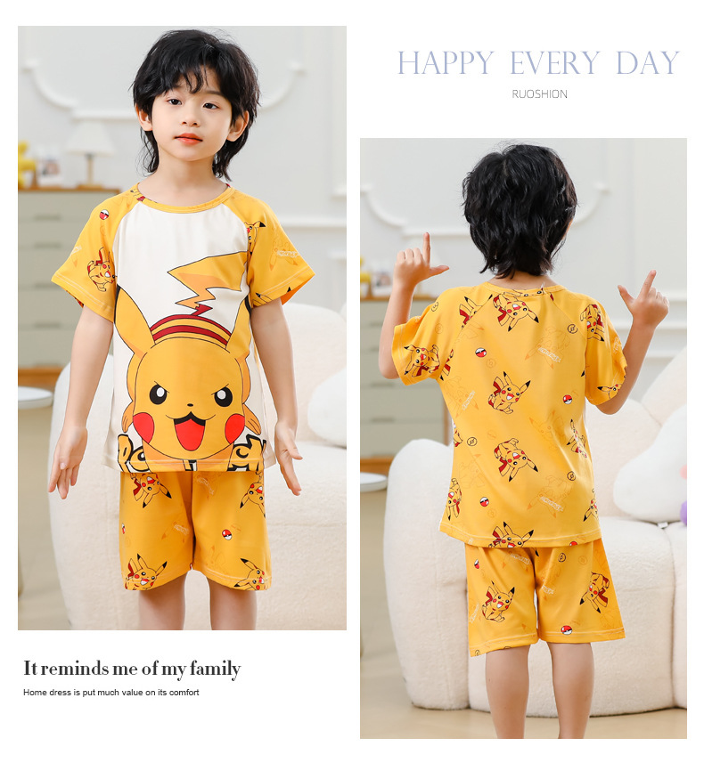 동남아 어린이 파자마 반팔 남학생과 여학생 만화 중학생 둥근 목 여름 에어컨 세트스토어 가기