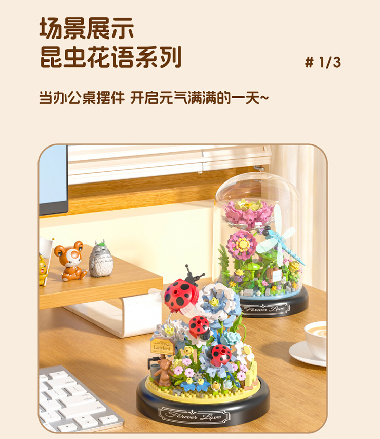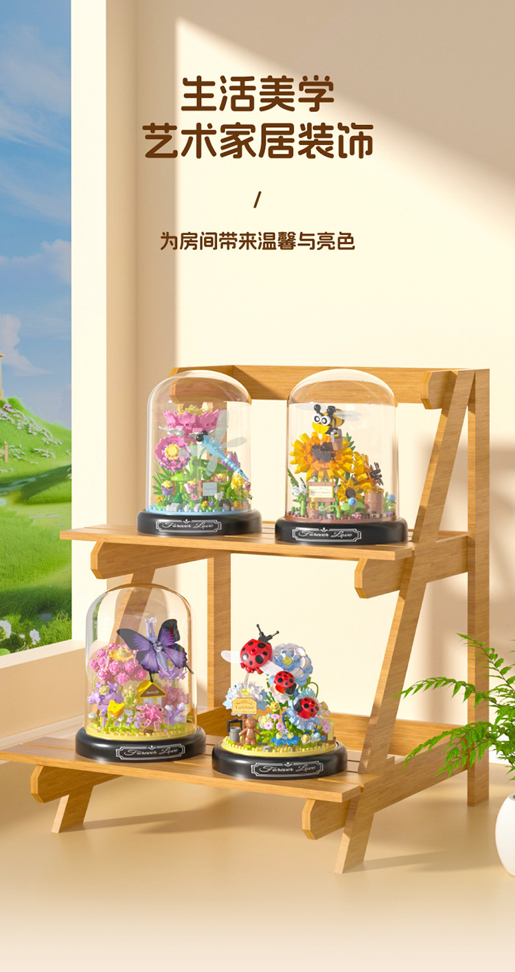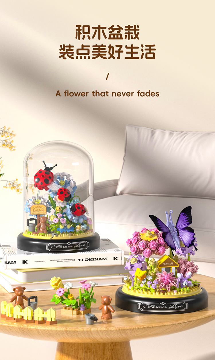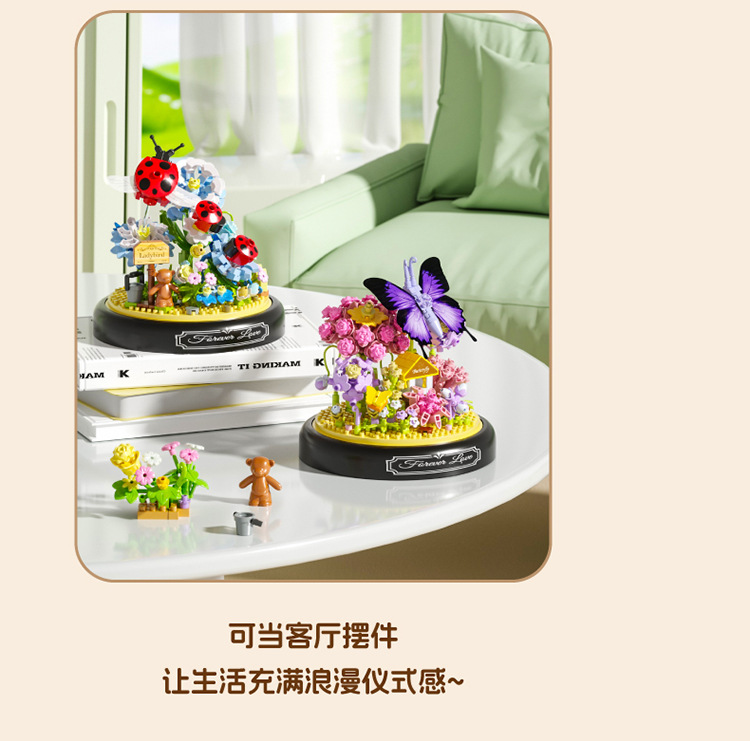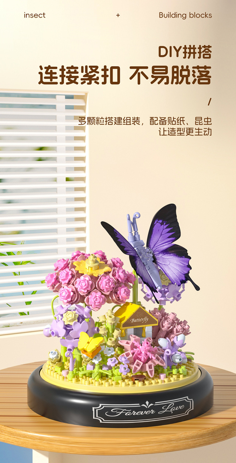 유 가오 곤충 이야기 꽃 나비 사랑 꽃 비행 나비 댄스 어린이 교육 조립 마이크로 드릴 빌딩 블록 장식품 장난감 도매스토어 가기