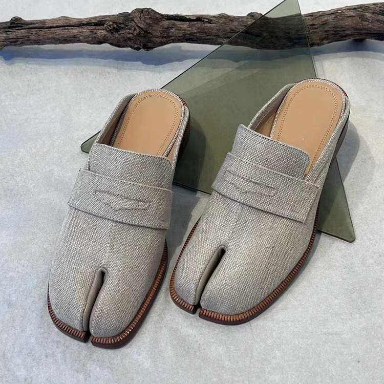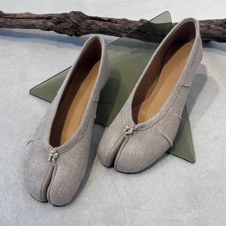 양가죽 버전 ~ 2024 새로운 빈티지 린넨 스플릿 발가락 플랫 바닥 패션 조커 페달 발레 피그 트로터스토어 가기