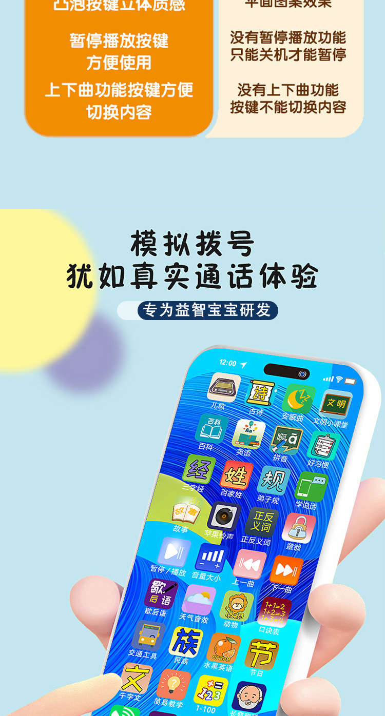 조기 교육 휴대 전화 음악 전화 시뮬레이션 아기 계몽주의 아이들의인지 교육 장난감 소년과 소녀 생일 선물스토어 가기