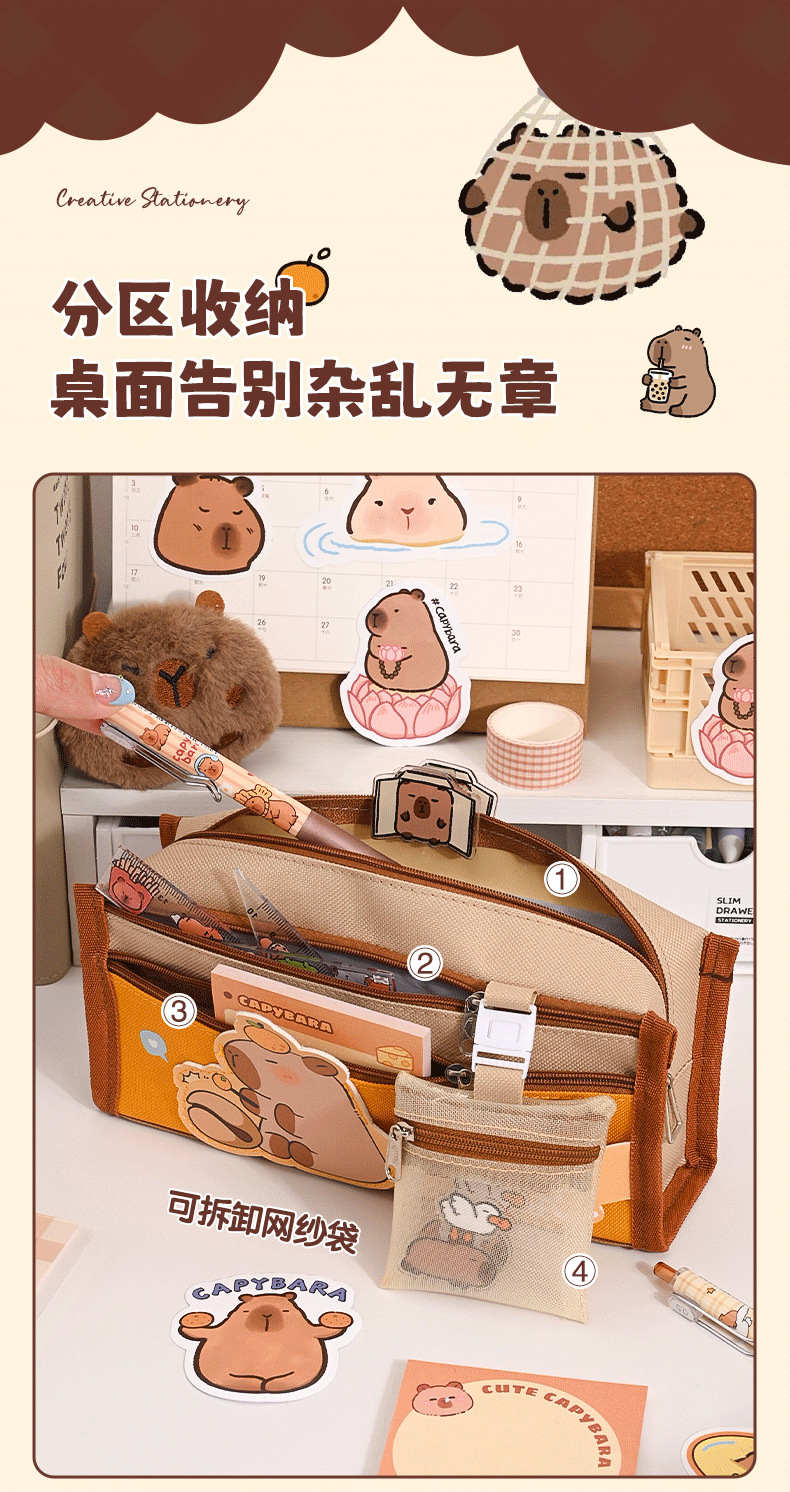 남녀 초등학생을위한 새로운 Kapi Barra 연필 케이스 중학생을위한 고색 가치 대용량 연필 케이스 멀티 레이어 연필 케이스스토어 가기
