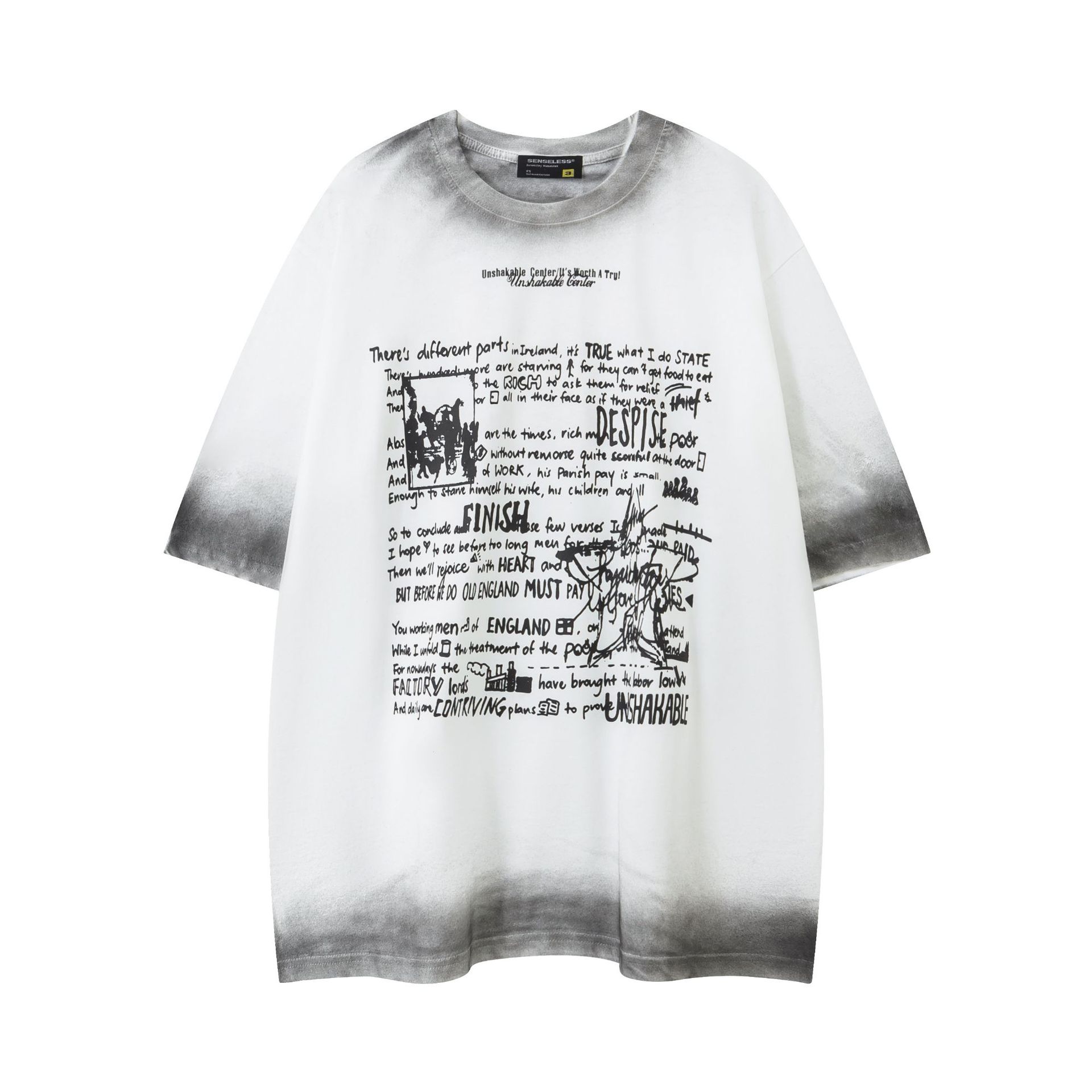 빈티지 올드 레터 슬로건 프린트 반 슬리브 톱 남녀 패션 올 매치 루즈 커플의 트렌디 한 브랜드 쇼트 슬리브 티셔츠