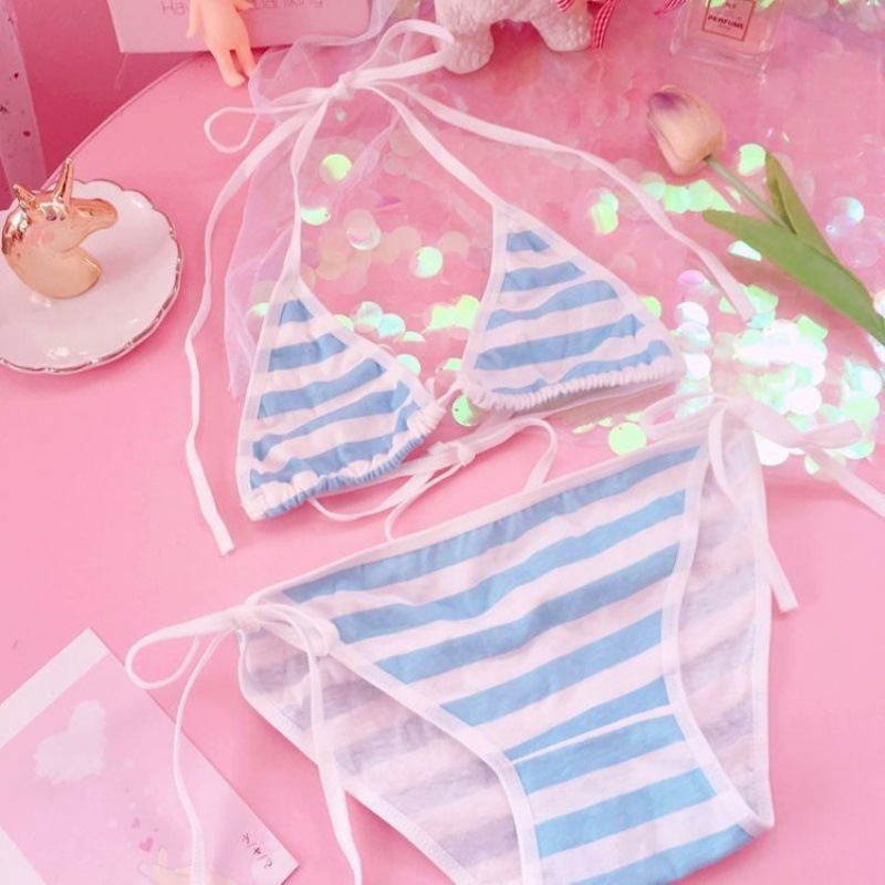 새로운 레이스 업 비키니 스타일 레이스 업 보조 애니메이션 코튼 수영복 세트 팻 서브 스플릿 여성 속옷