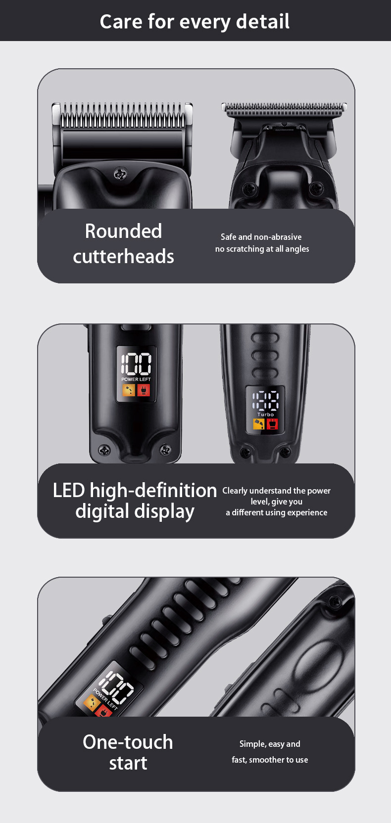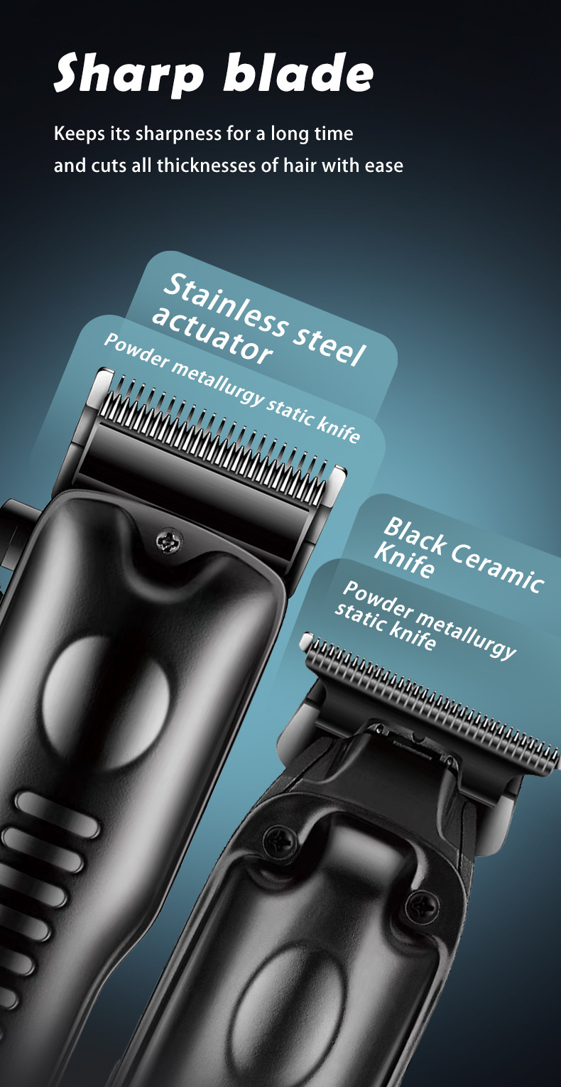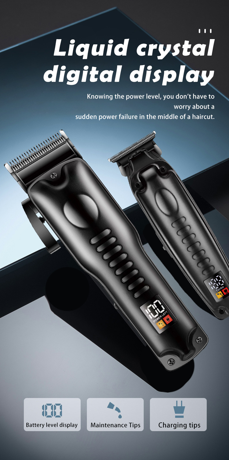 국경 간 지능형 디지털 디스플레이 조각 가위 헤어 클리퍼 세트 충전식 전기 클리퍼 조정 가능한 칼 거리 조각 가위