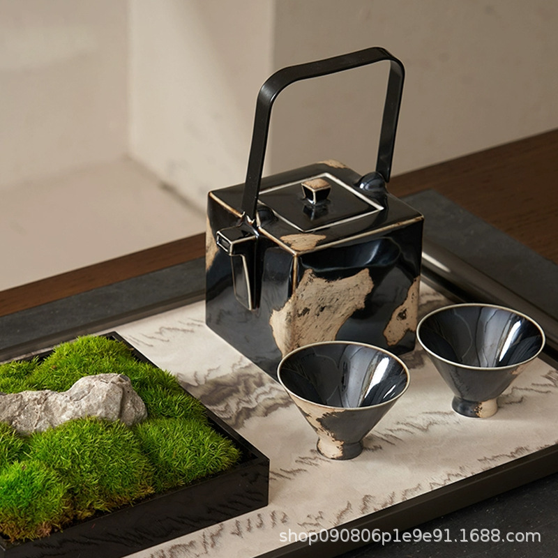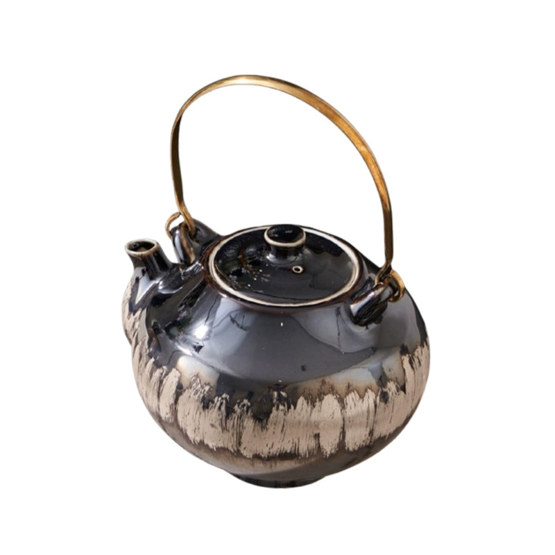 • 검은 유약과 금빛 겨울 멜론 주전자: 10*10*16cm