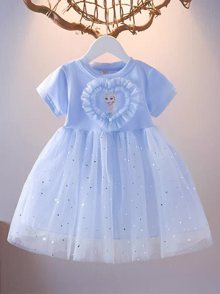 여자 원피스 반팔 아이샤 공주 스커트 여름 새로운 냉동 메쉬 스커트 스타일리스트 어린이 아이샤 스커트스토어 가기