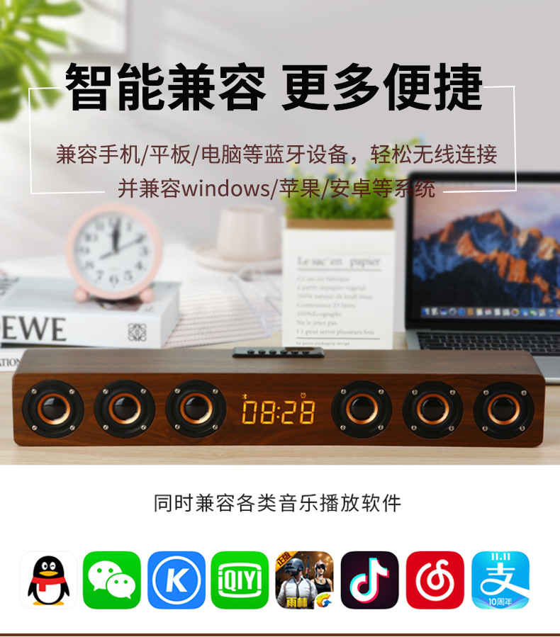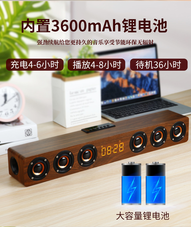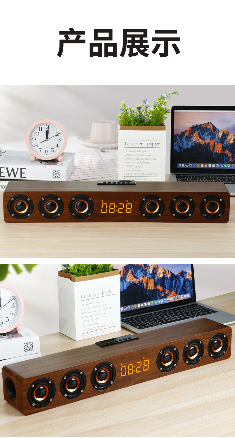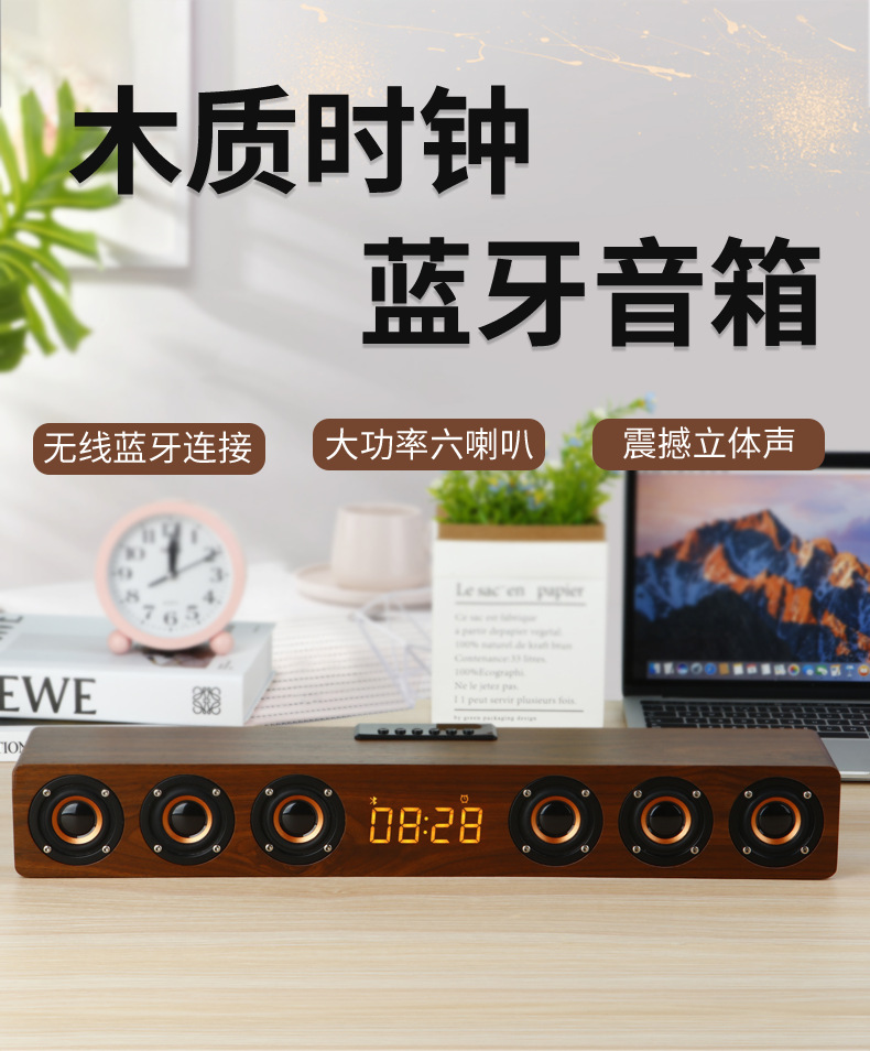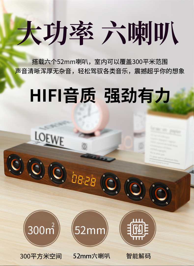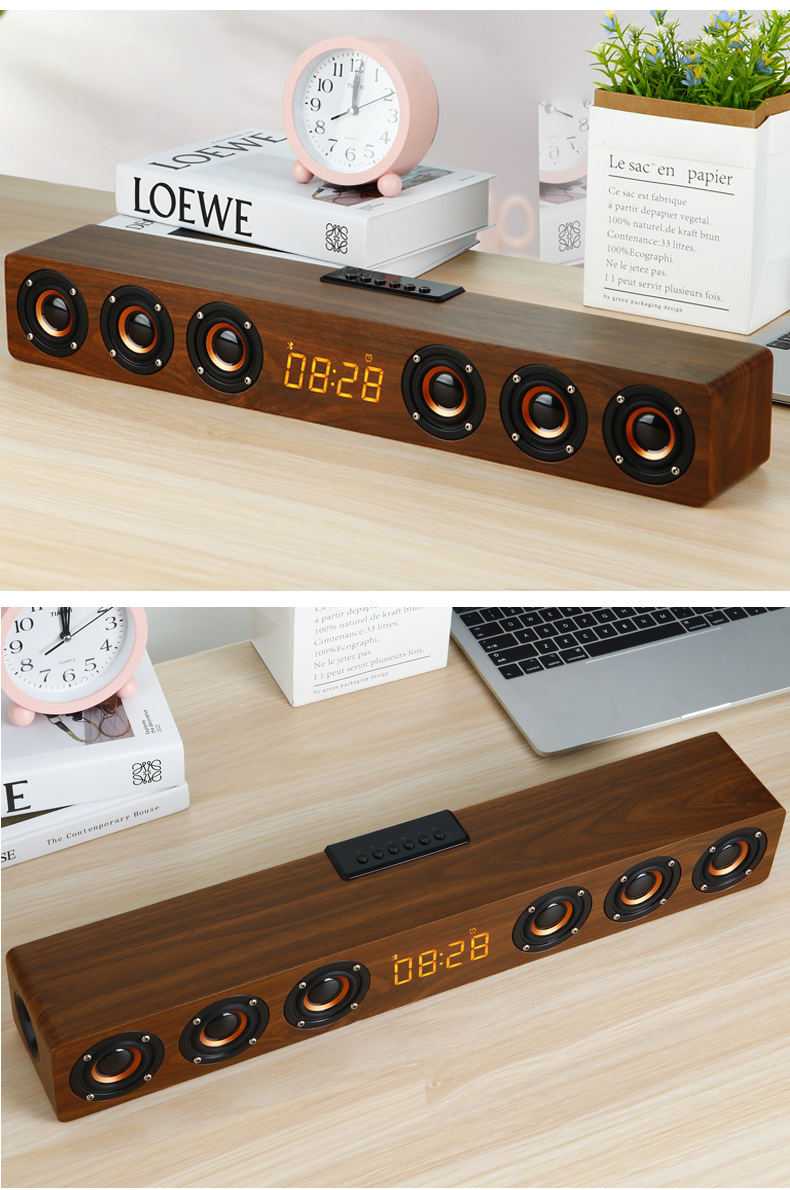 K6 새로운 나무 무선 블루투스 스테레오 홈 TV 에코 벽 스테레오 다기능 시계 알람 시계 서브 우퍼