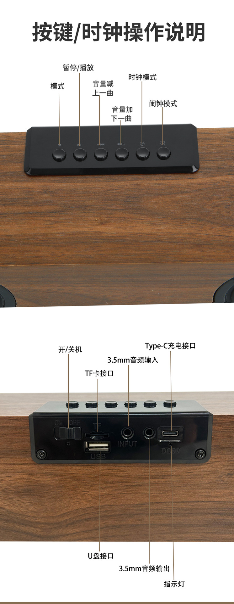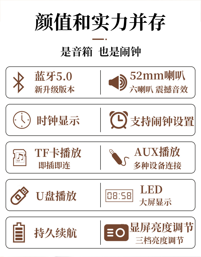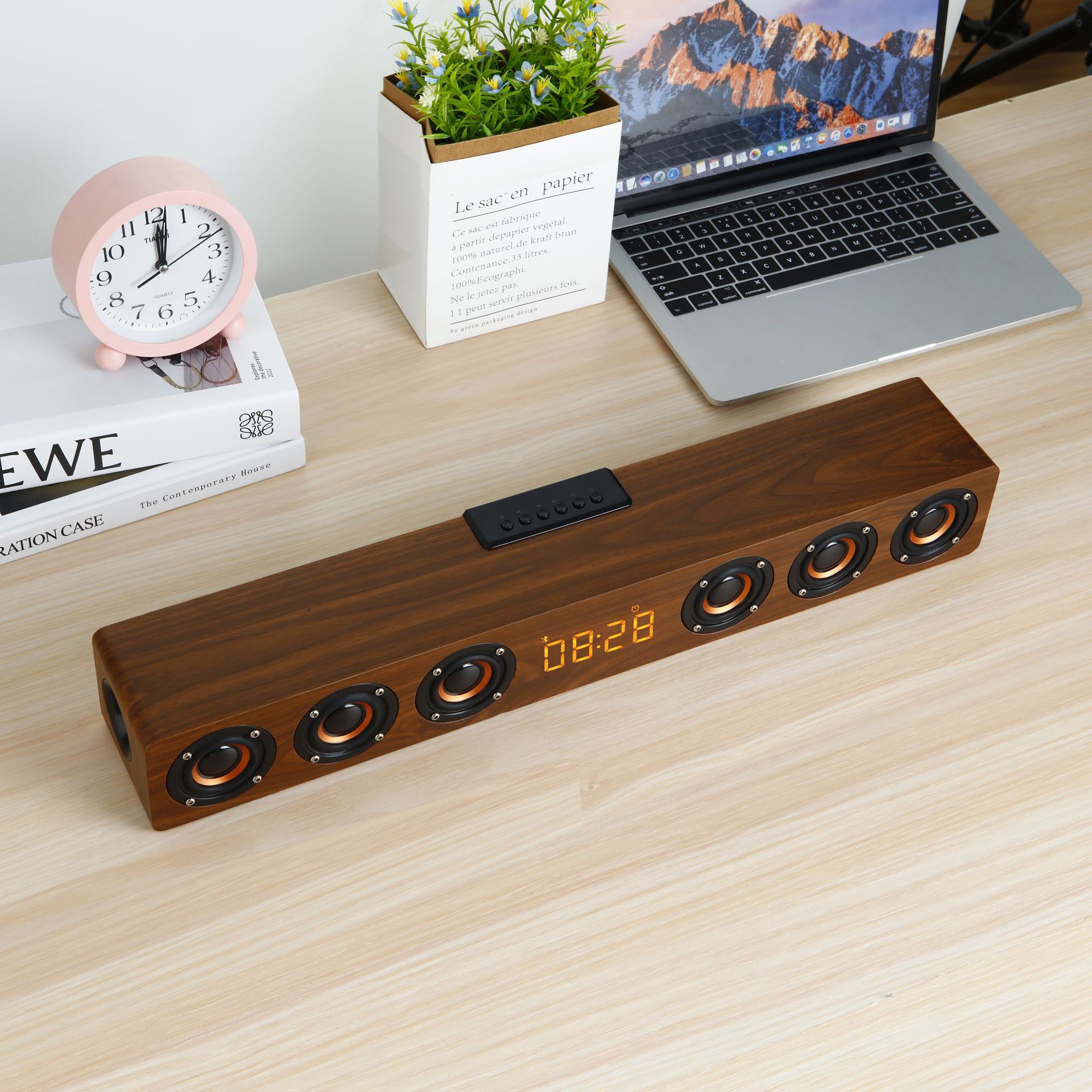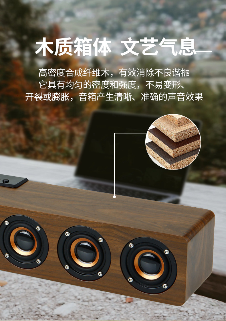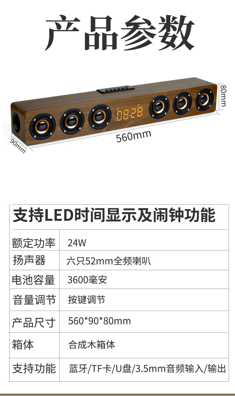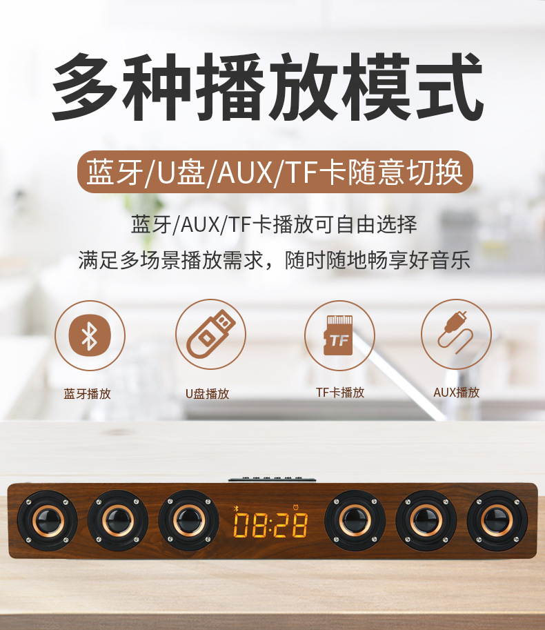 K6 새로운 나무 무선 블루투스 스테레오 홈 TV 에코 벽 스테레오 다기능 시계 알람 시계 서브 우퍼