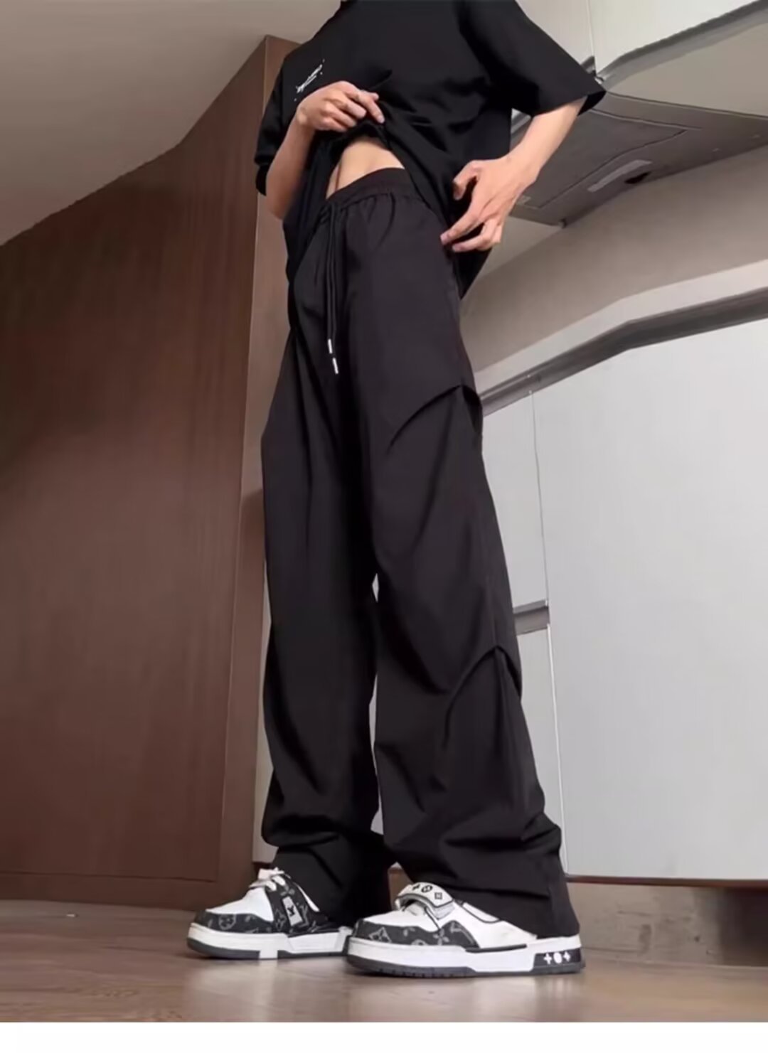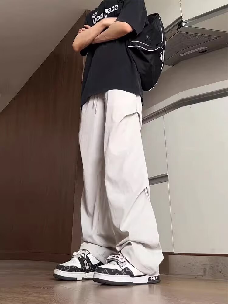 2024 여름 아이스 실크 쿨 센스 낙하산 캐주얼 바지 스트레이트 튜브 느슨한 넓은 다리 드롭 센스 슬리밍 올 매치 남자 트렌디스토어 가기