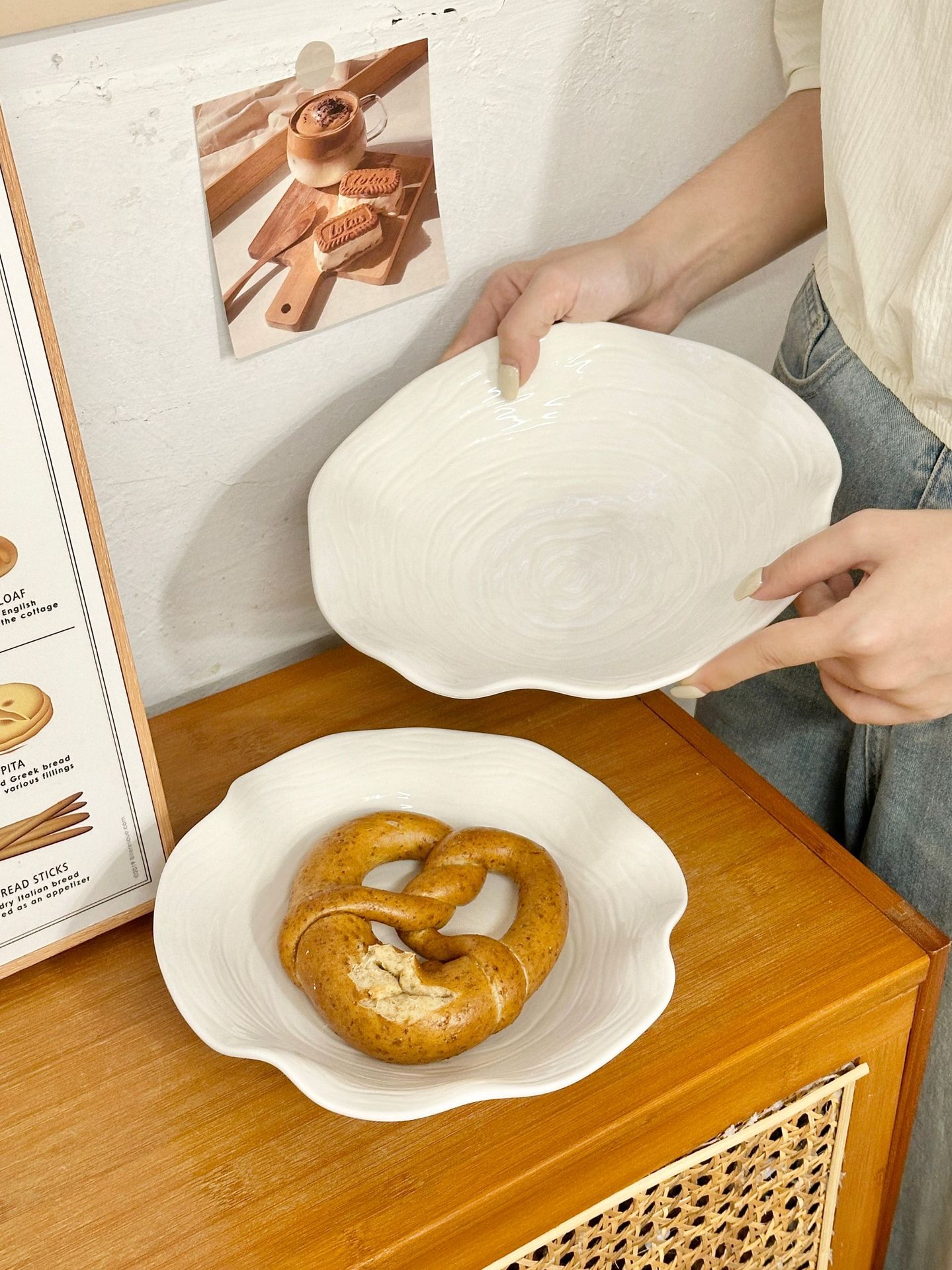세라믹 식기 북유럽 스타일 고급 백자 꽃무늬 접시 디저트 접시 요리 접시 가정용 호텔 심플 장식스토어 가기