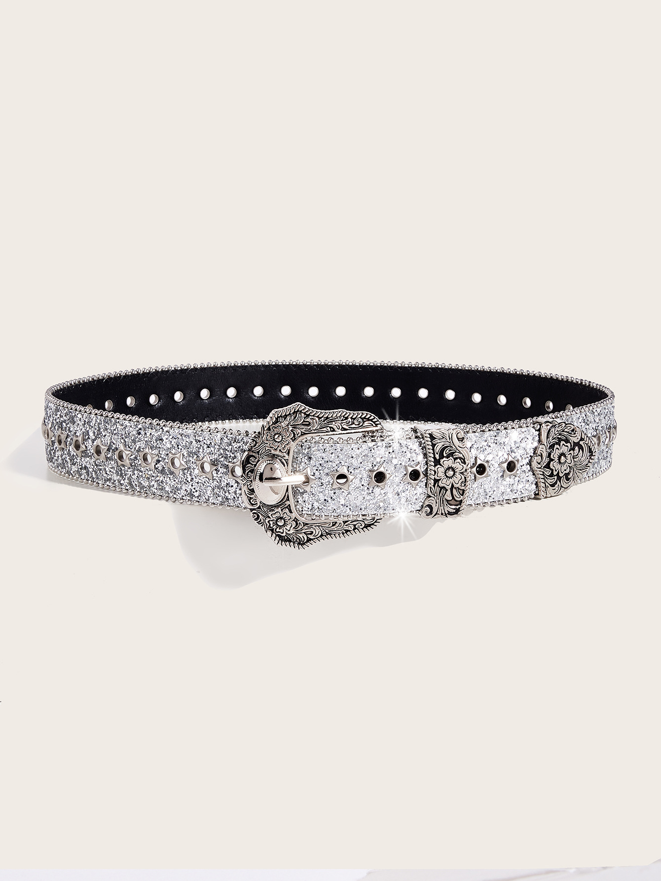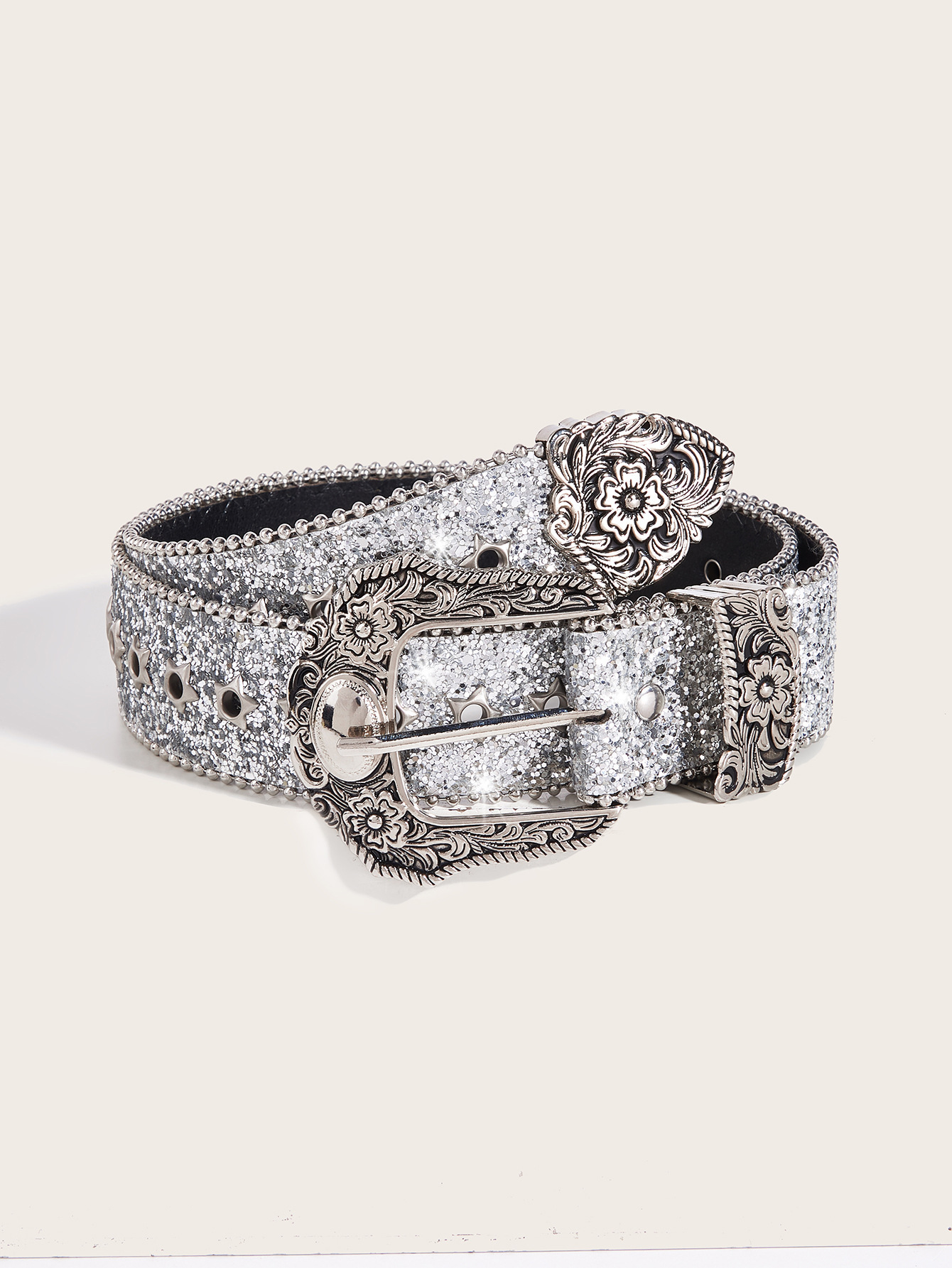 • 총 고대 복고풍 버클 (스타 풀 버튼 홀 자동차 가장자리 구슬) 실버 파우더
