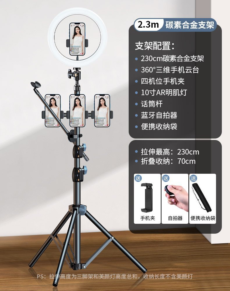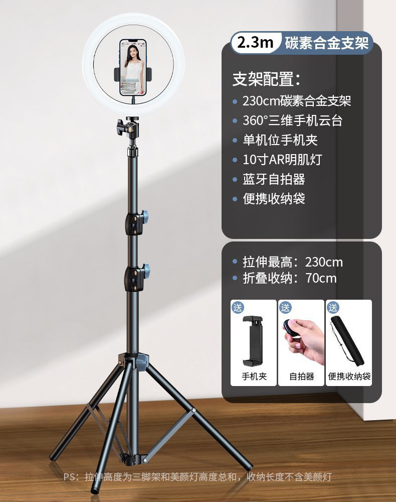 • 2.3 m [탄소 합금 브래킷] 4 기계 10 인치 램프 셀카 저장 가방