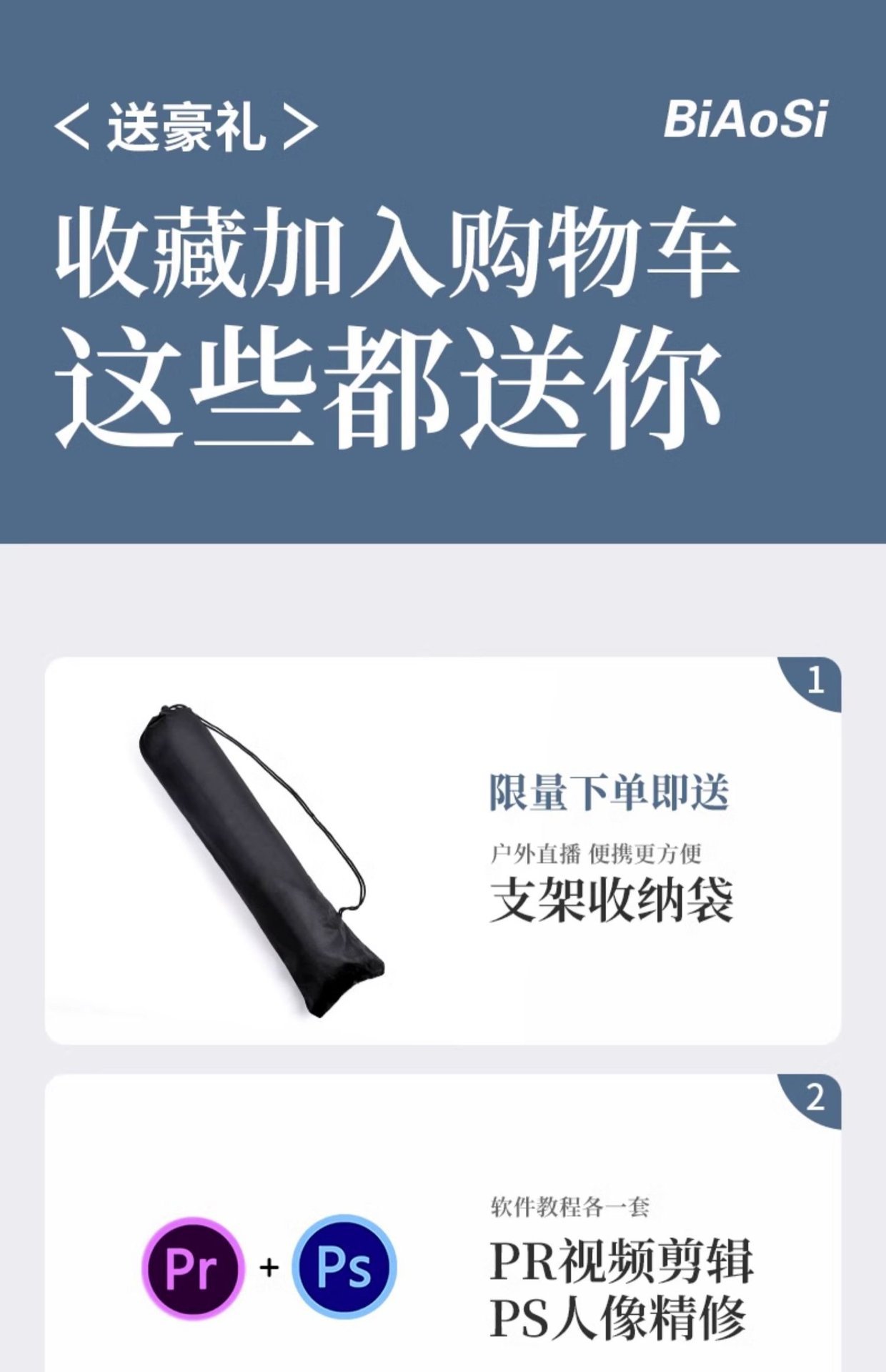 • 1.8 m [탄소 합금 브래킷] 4 기계 10 인치 램프 셀카 저장 가방