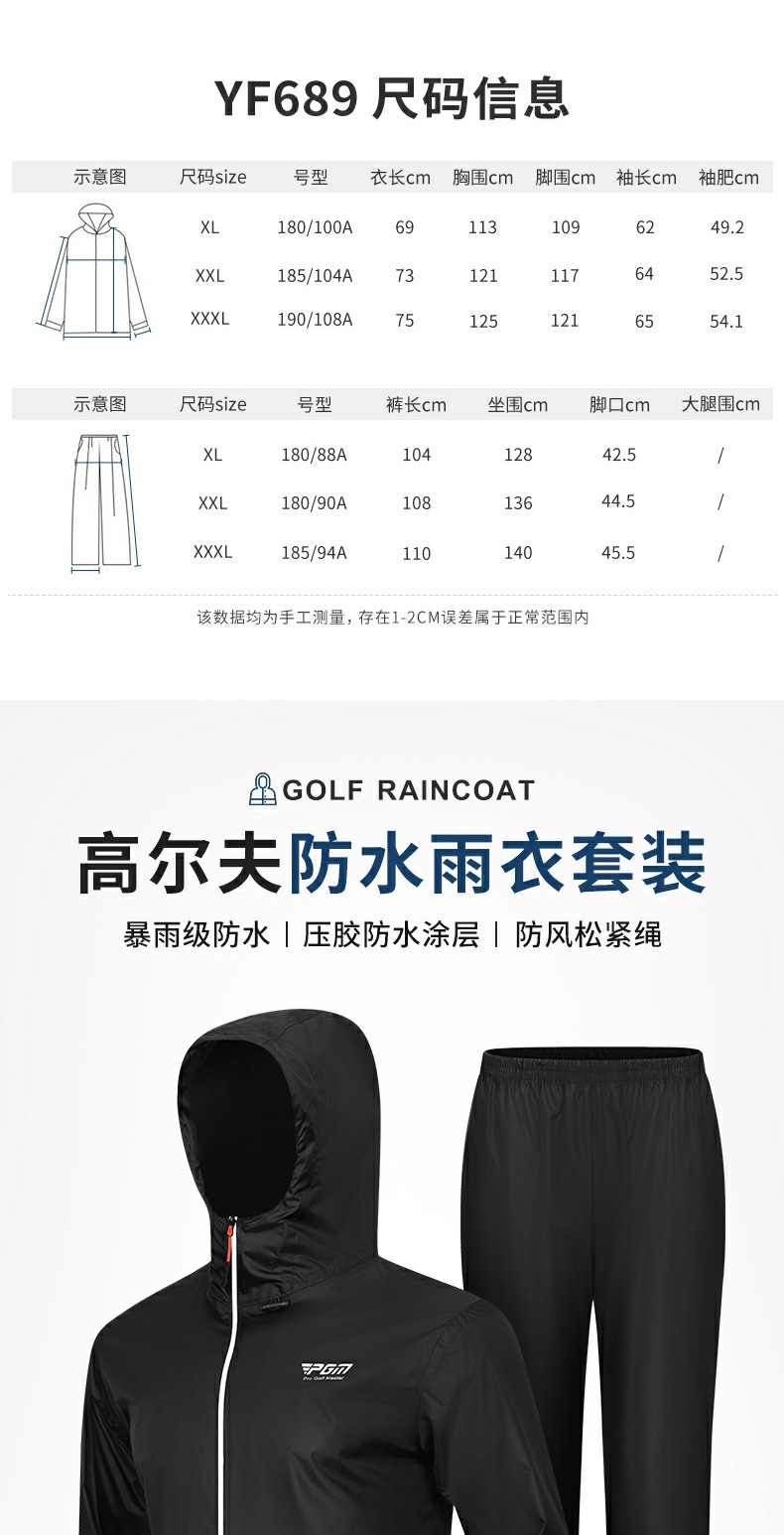名 称高尔夫防水雨衣套装码 数XL,XXL,XXXL