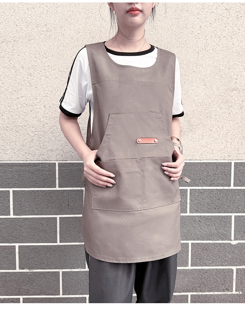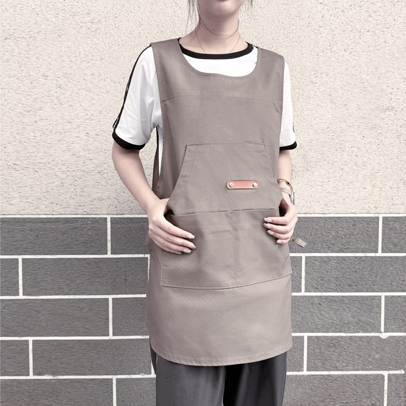 국경 간 패션 캔버스 민소매 조끼 바지 밀크 티 커피 숍 바지 오염 방지 방수 인쇄 가능한 로고스토어 가기