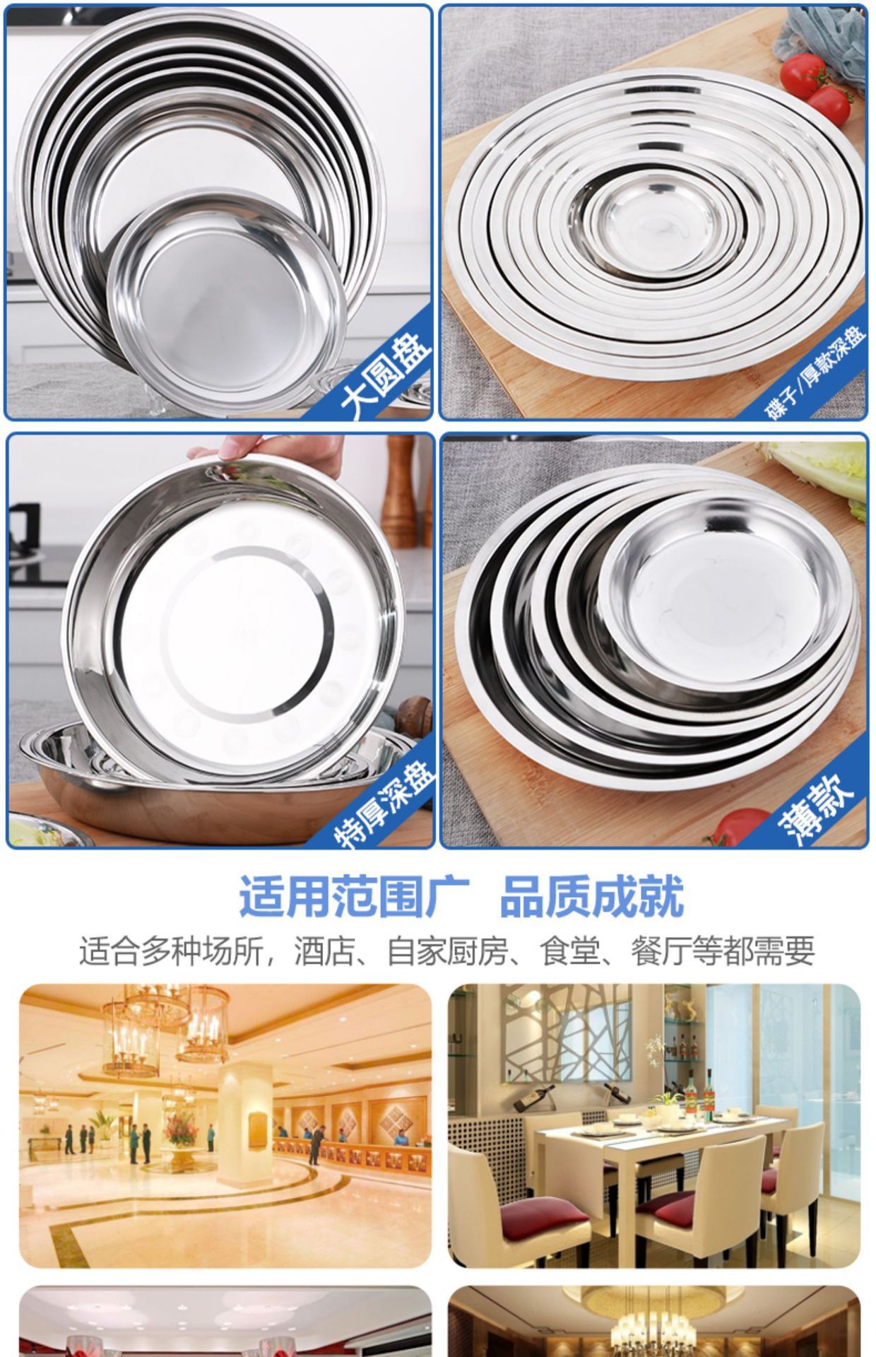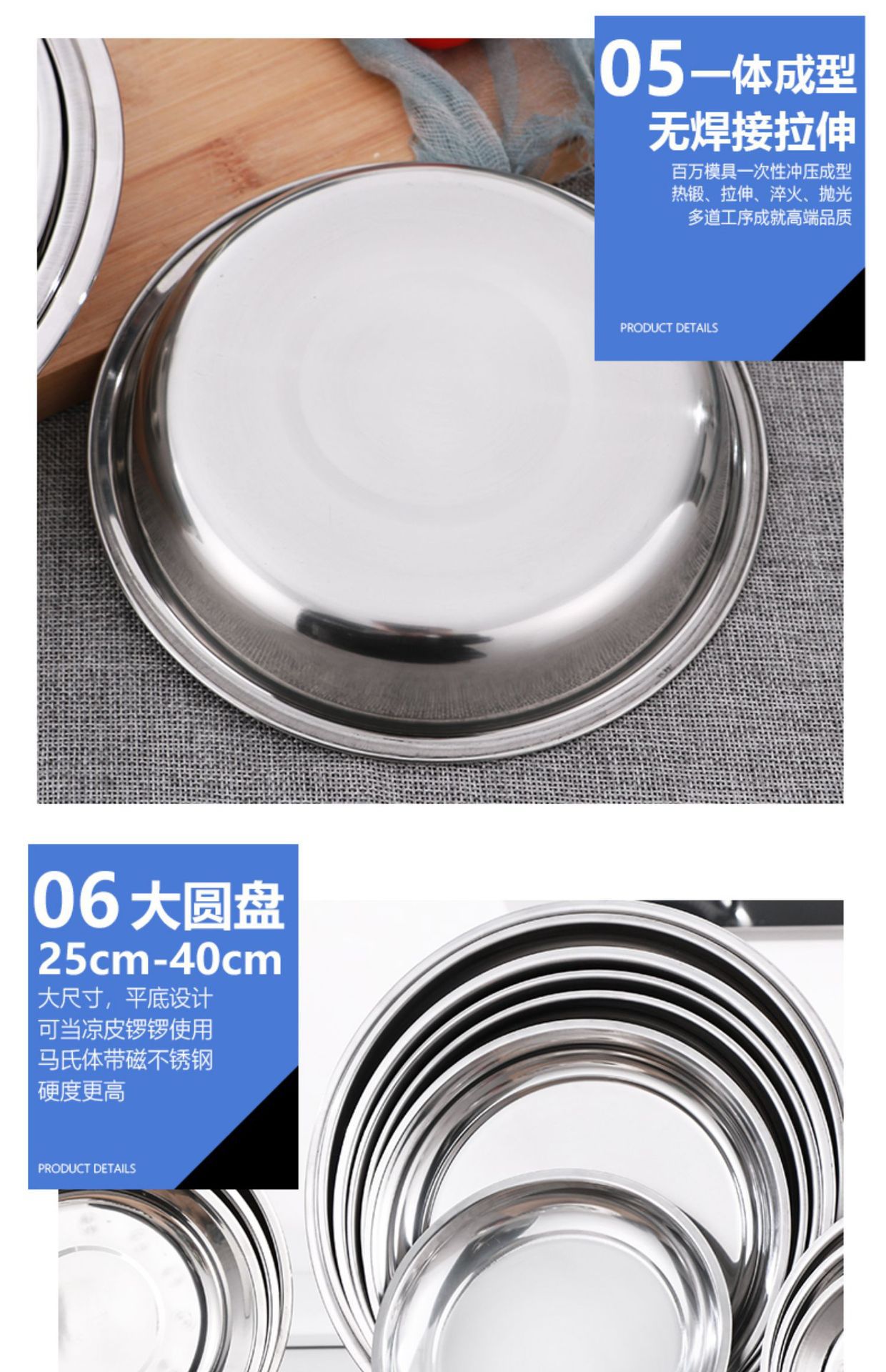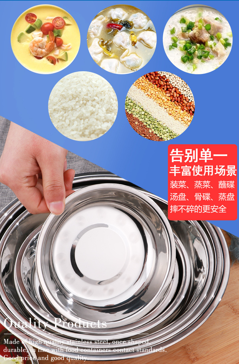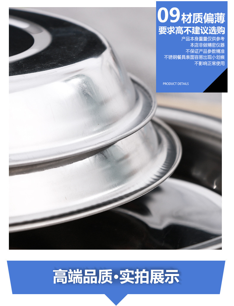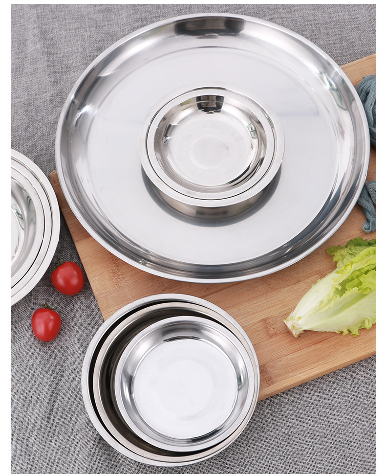 스테인레스 스틸 플레이트 가정용 디스크 플랫 플레이트 트레이 디너 플레이트 딥 플레이트 아이언 플레이트 접시 라운드 플레이트 과일 플레이트 바베큐 플레이트스토어 가기