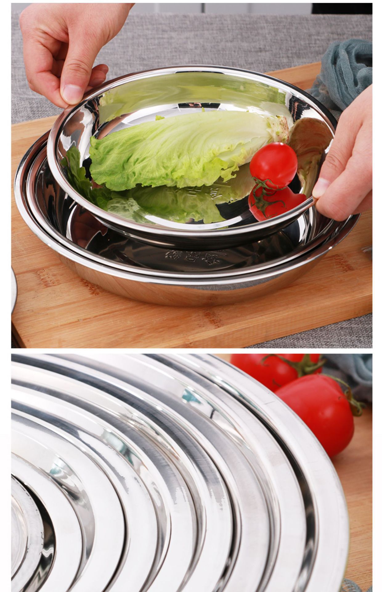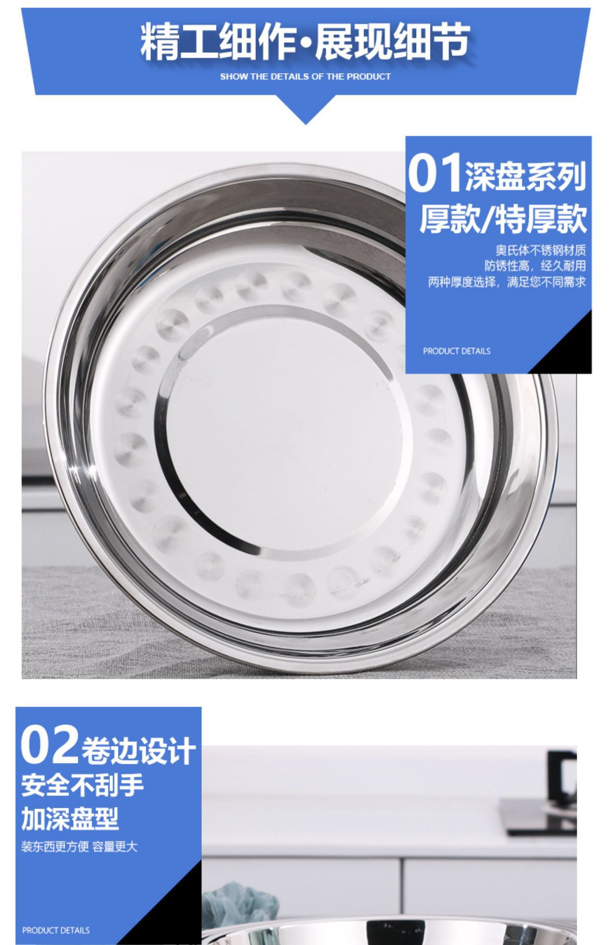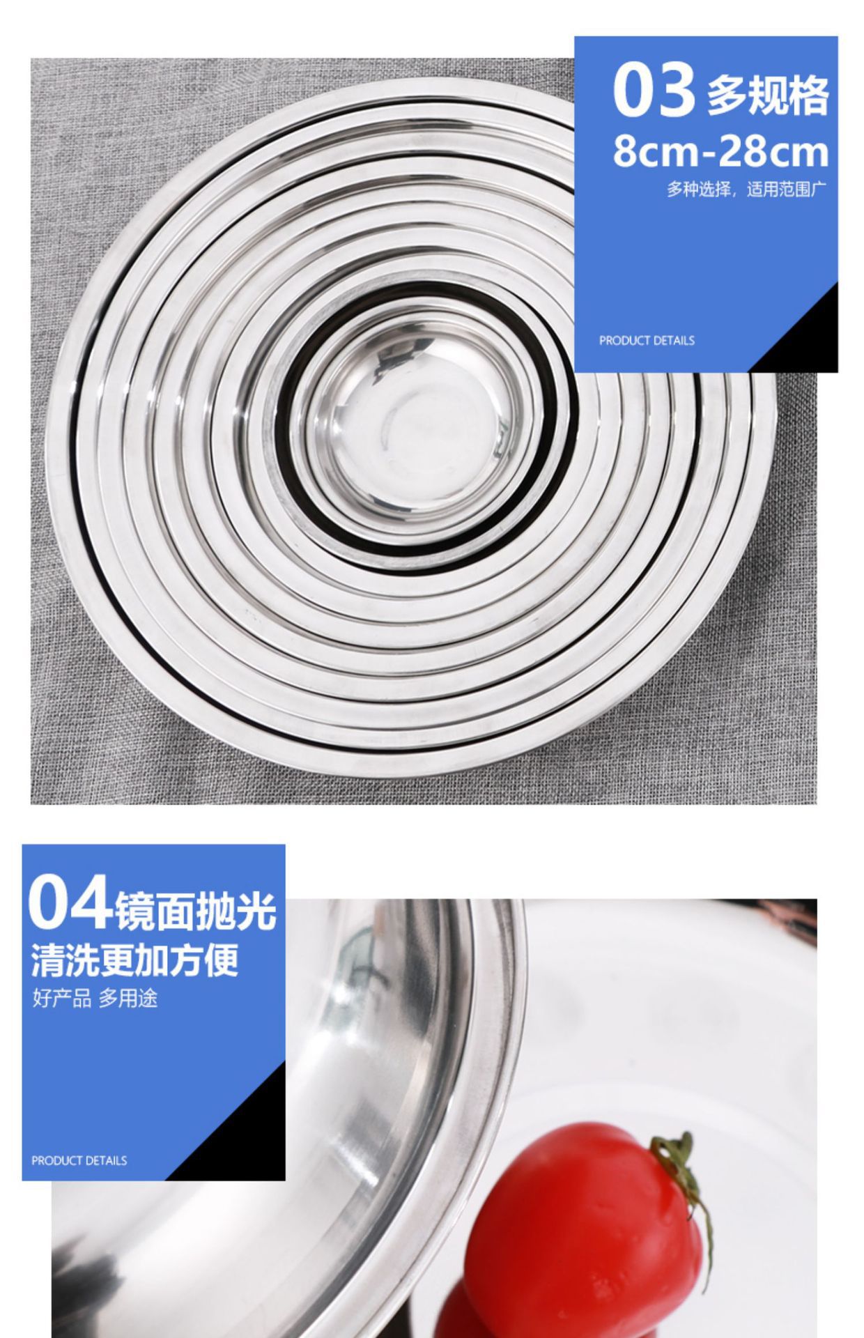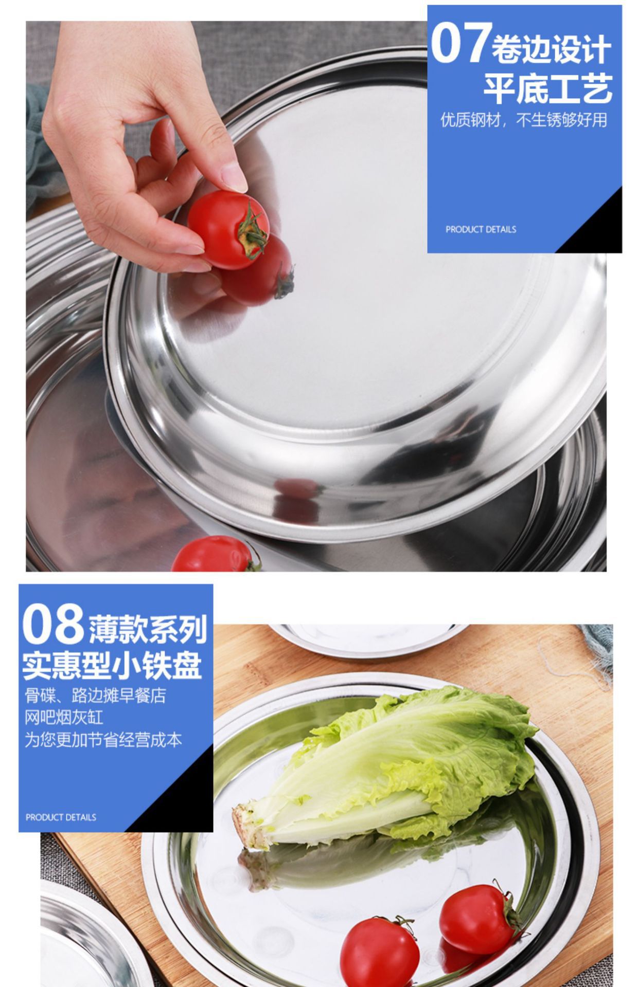 스테인레스 스틸 플레이트 가정용 디스크 플랫 플레이트 트레이 디너 플레이트 딥 플레이트 아이언 플레이트 접시 라운드 플레이트 과일 플레이트 바베큐 플레이트스토어 가기