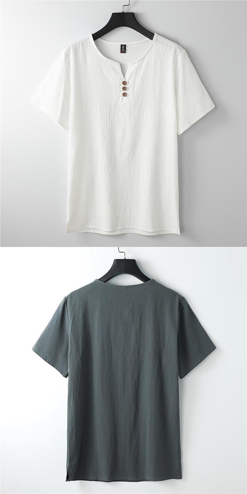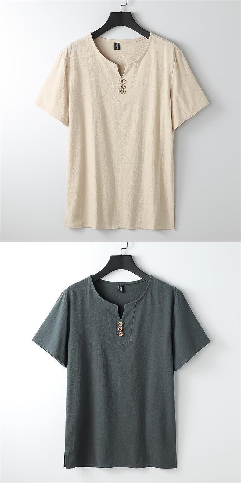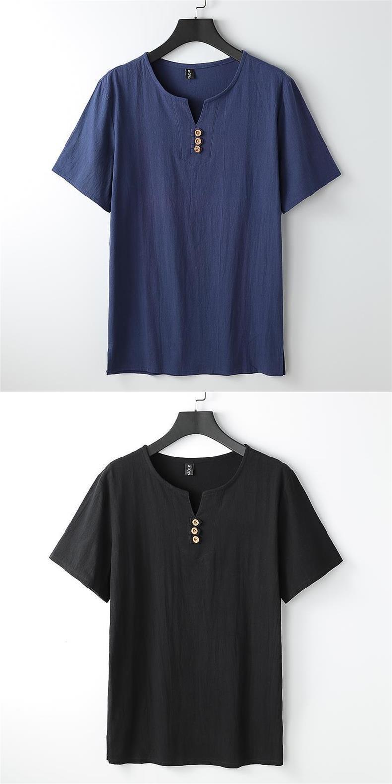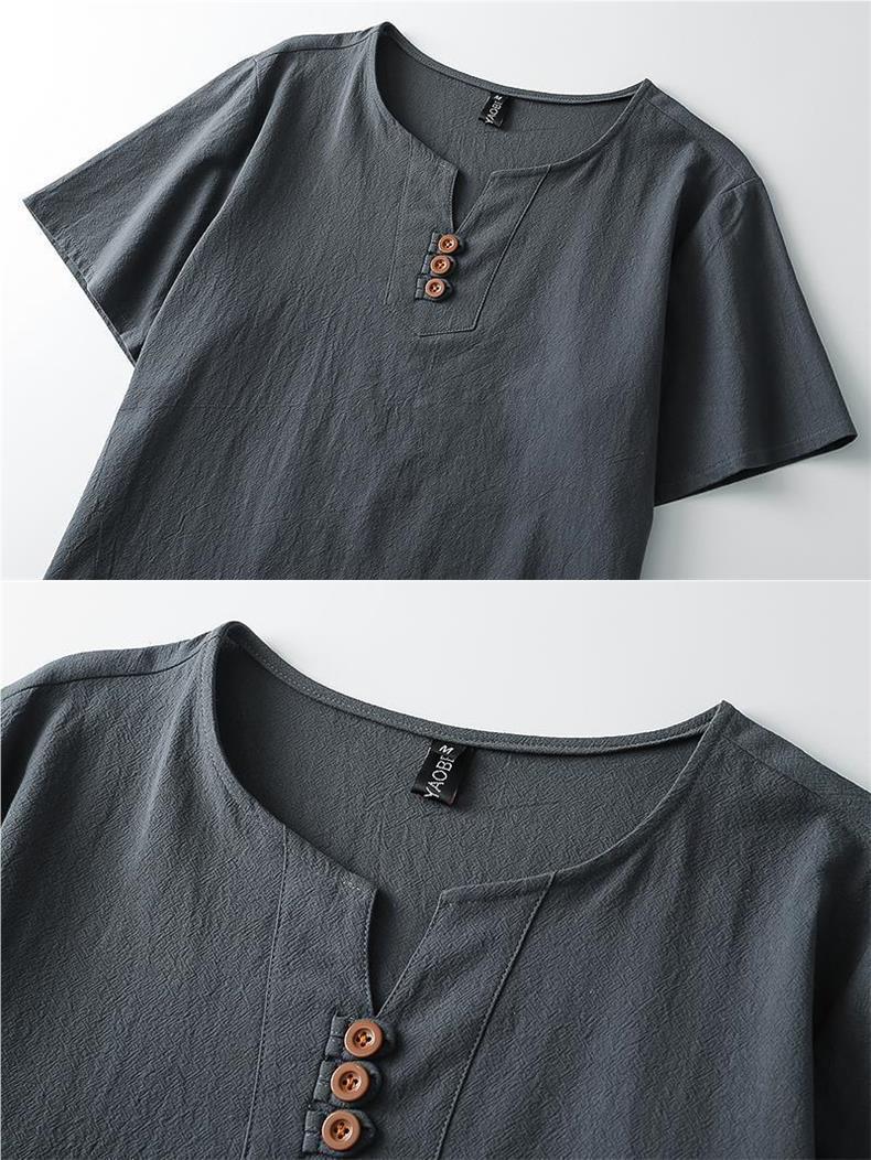 여름 리넨 티셔츠 남성용 중국 스타일 코튼 및 리넨 V 넥 남성용 루즈 플러스 사이즈 청소년 반소매 탑 리넨 의류스토어 가기