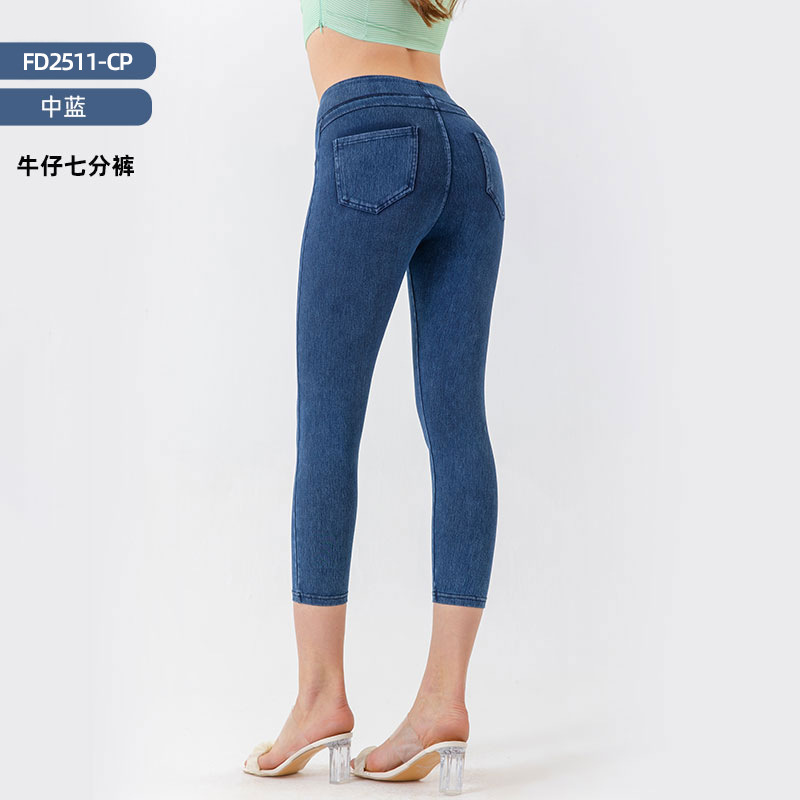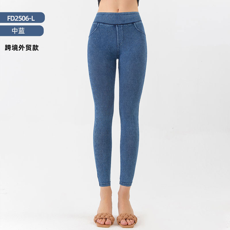 유럽과 미국의 국경 새로운 풀 시리즈 더블 포켓 높은 허리 스키니 요가 청바지 슬리밍 힙 리프트 레이업 바지스토어 가기