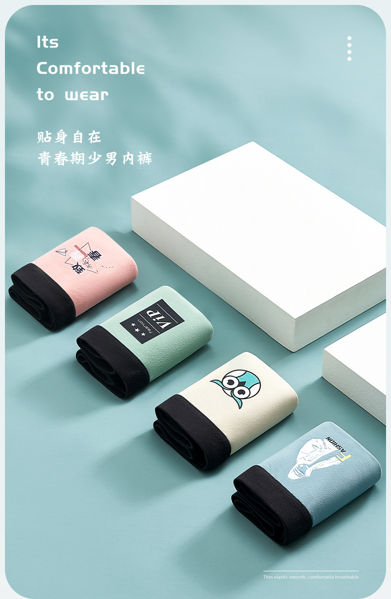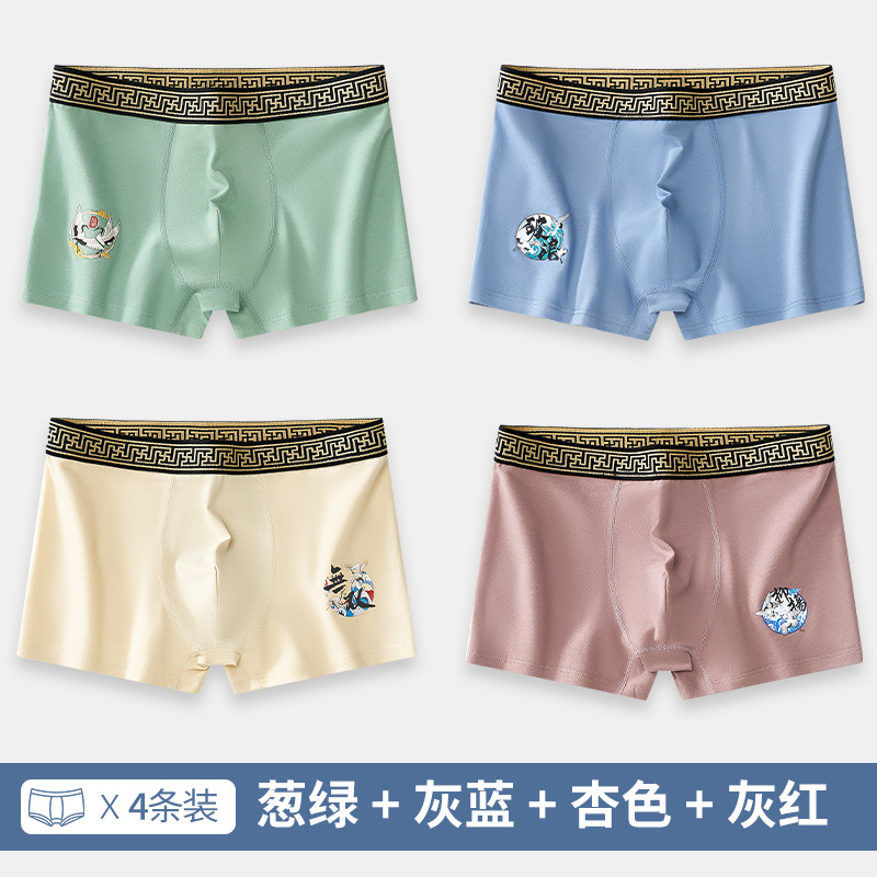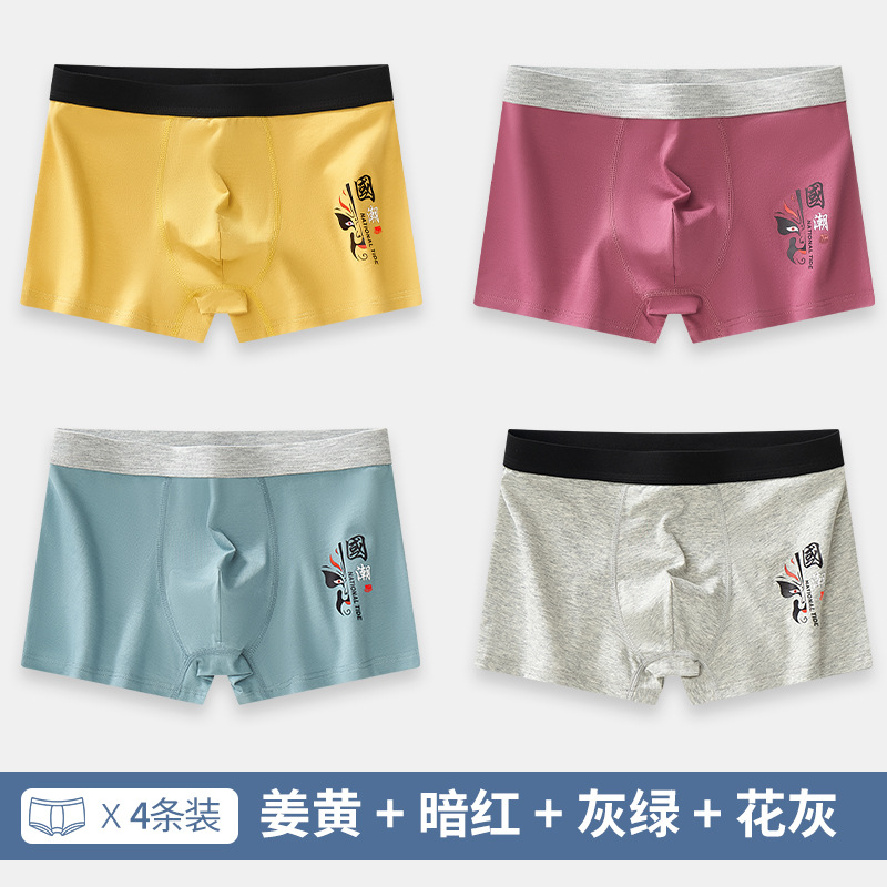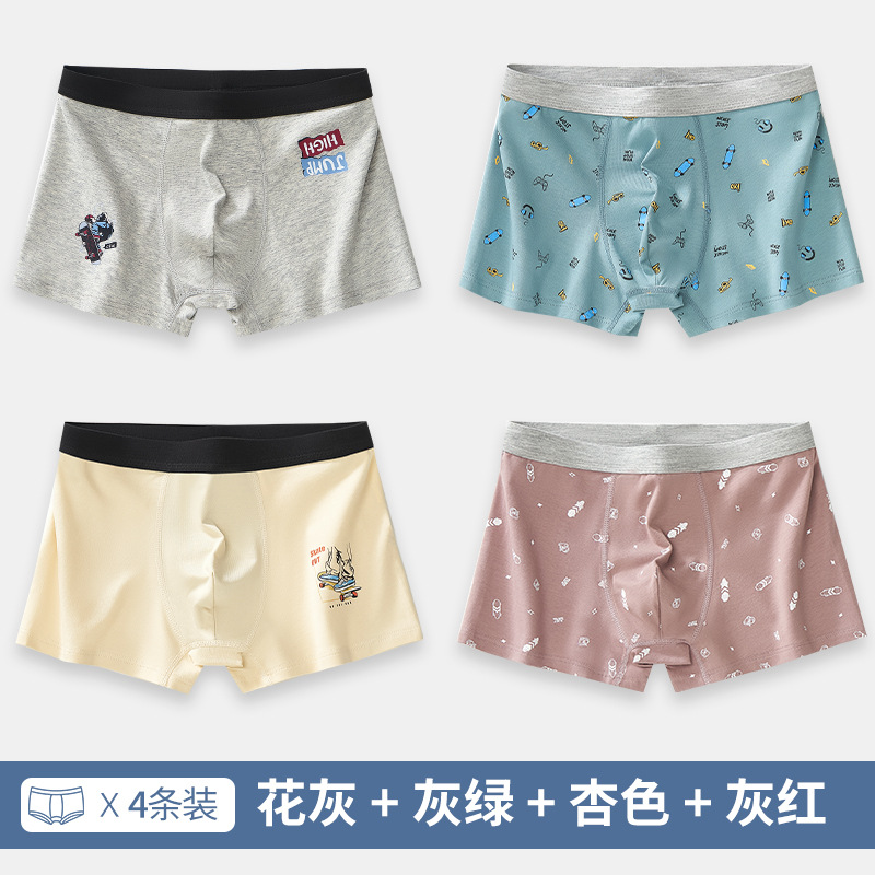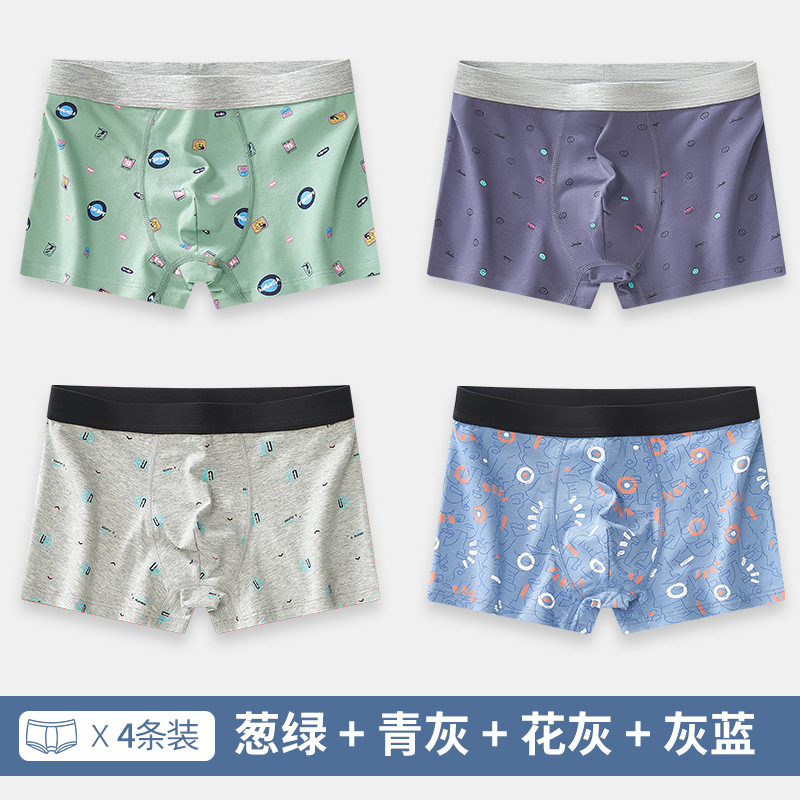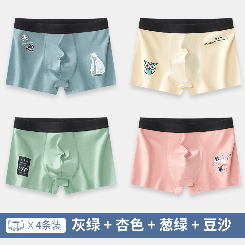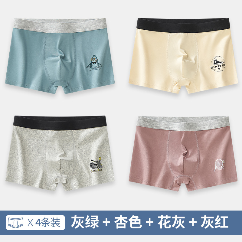 【4개입】청소년 남아용 순면 사각팬티, 발달기용 5A급 항균 남아 사각팬티