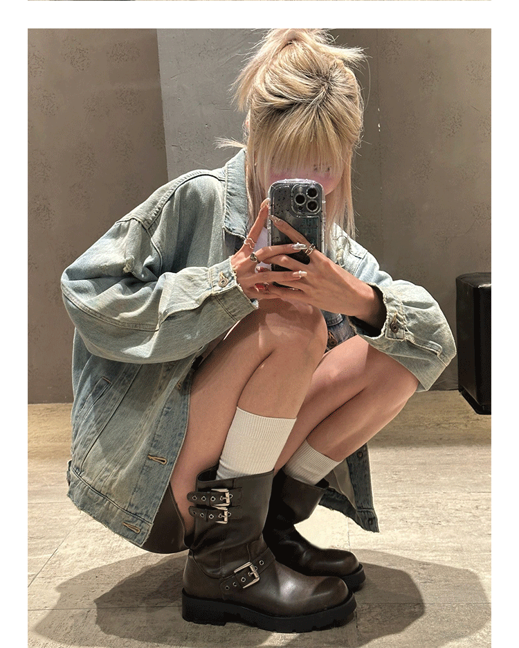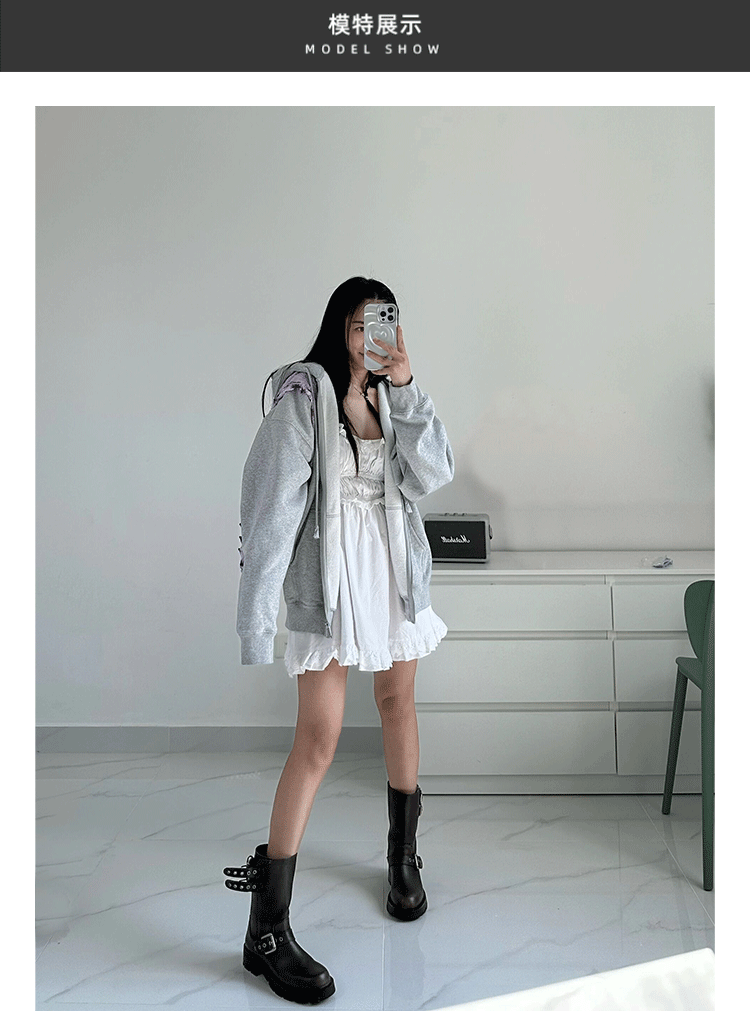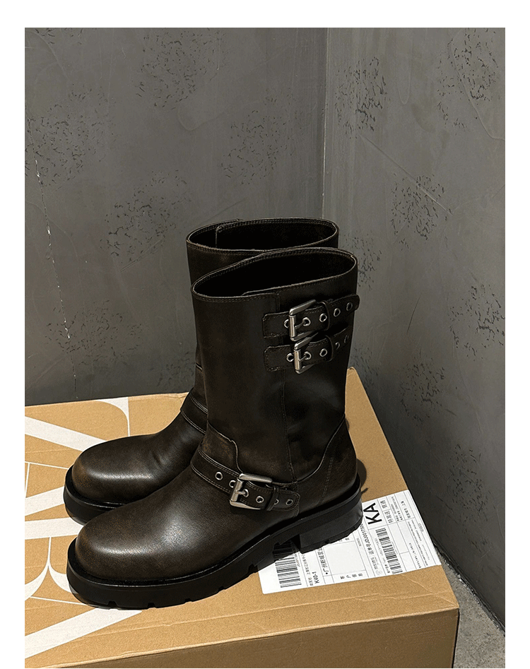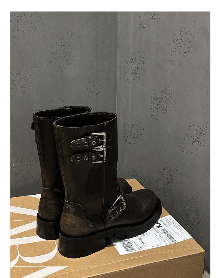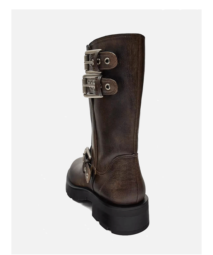 Zarr Summer Martin 부츠 여성 라운드 발가락 유럽 및 미국 스타일 기사 부츠 금속 버클 짧은 부츠 웨스턴 카우보이 부츠 플랫폼 부츠스토어 가기