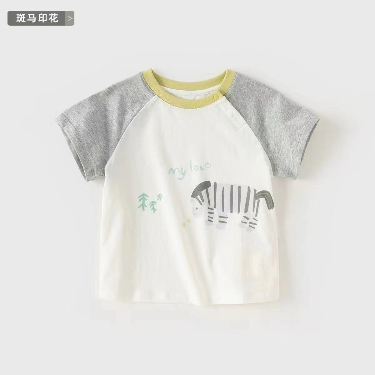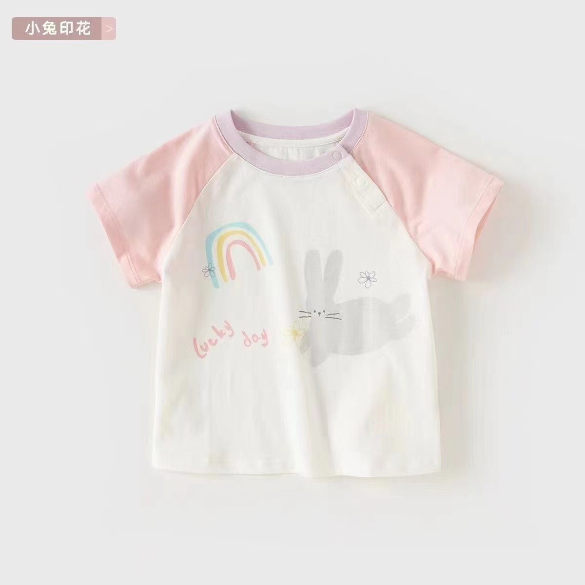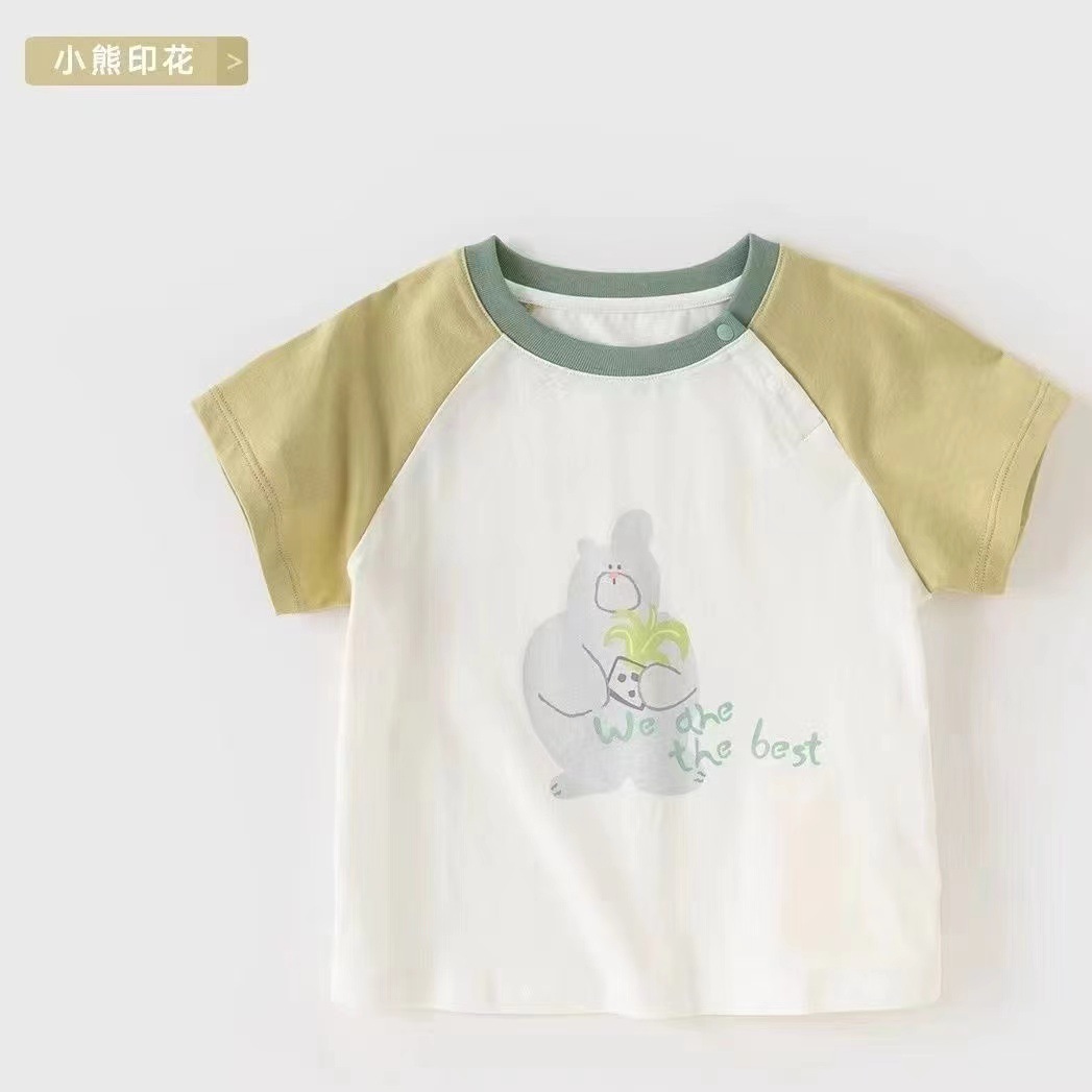 인터넷 연예인 어린이 반팔 티셔츠 2024 여름 새 소년 순면 베이스 셔츠 아기 걸스 세련된 탑 폭발스토어 가기