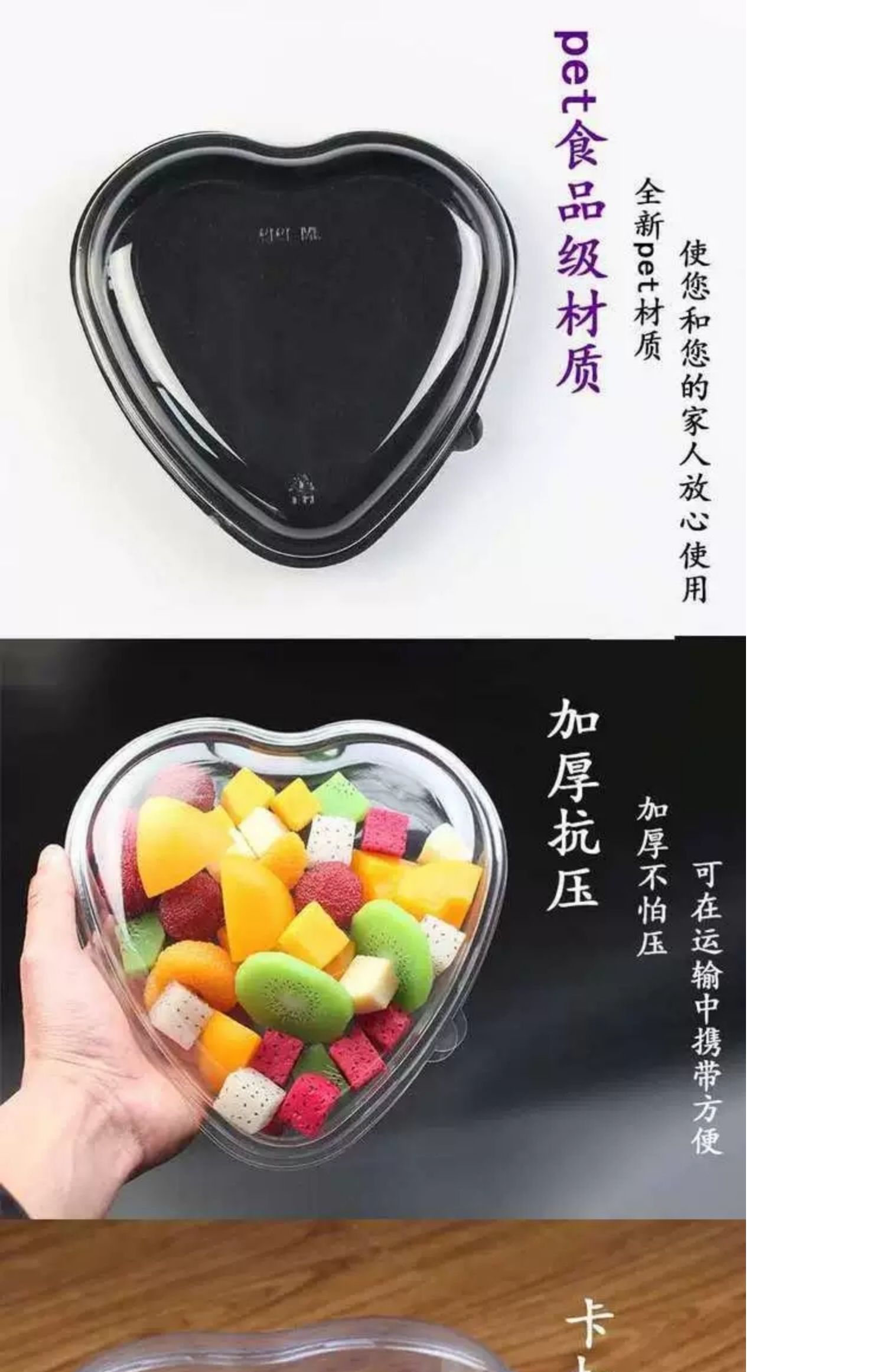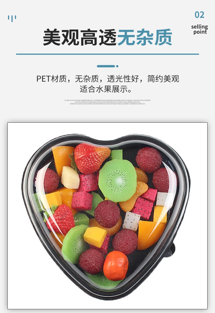 A5L 일회용 플라스틱 상자 하트 모양의 투명 신선한 과일 플레이트 포장 과일 커팅 플래터 뚜껑 구획 포장 상자스토어 가기