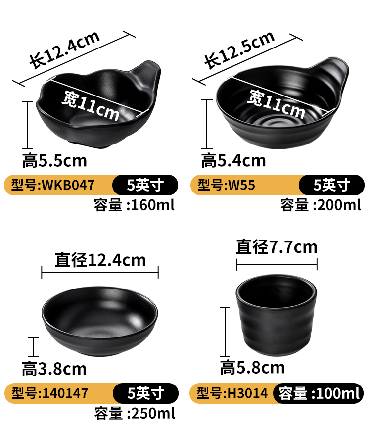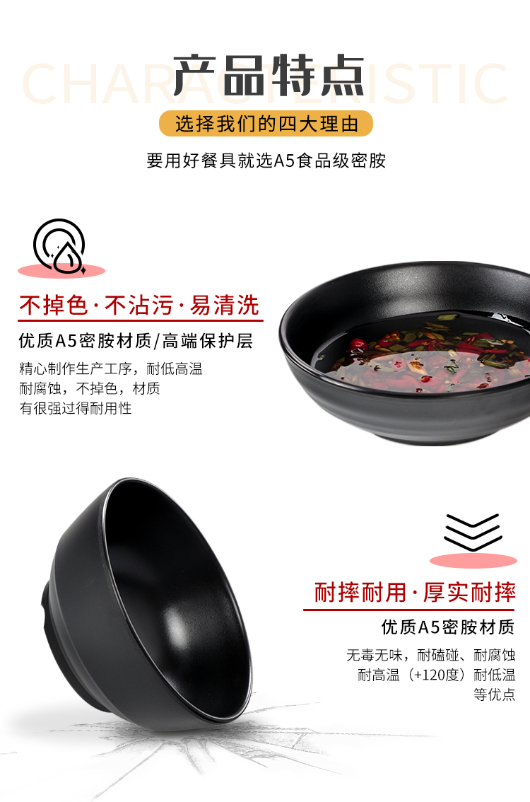 A5L 멜라민 식기 플라스틱 작은 그릇 손잡이 딥 그릇 도자기 매점 뚜껑 밥 그릇 상업 냄비 딥
