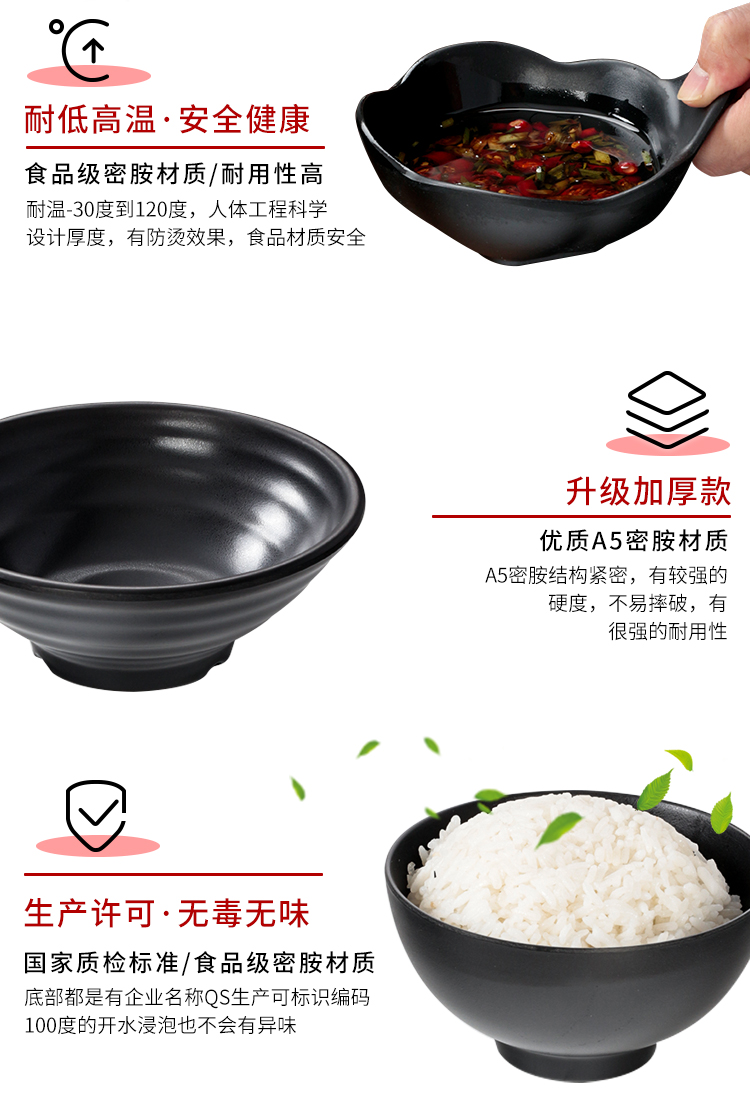 A5L 멜라민 식기 플라스틱 작은 그릇 손잡이 딥 그릇 도자기 매점 뚜껑 밥 그릇 상업 냄비 딥스토어 가기