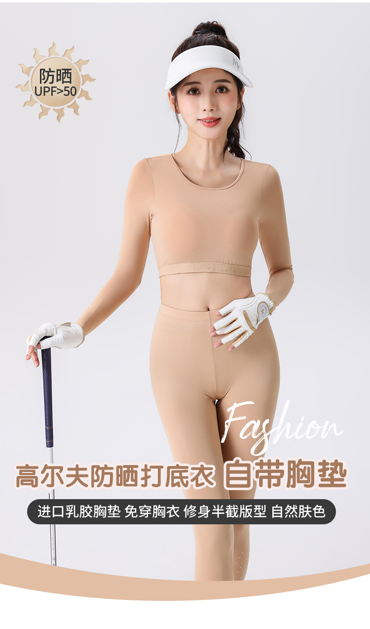 내 골프 선 스크린 스킨 컬러 스포츠베이스 셔츠 여성용 여름 긴팔 슬림 하프 섹션 라텍스 가슴 패드스토어 가기