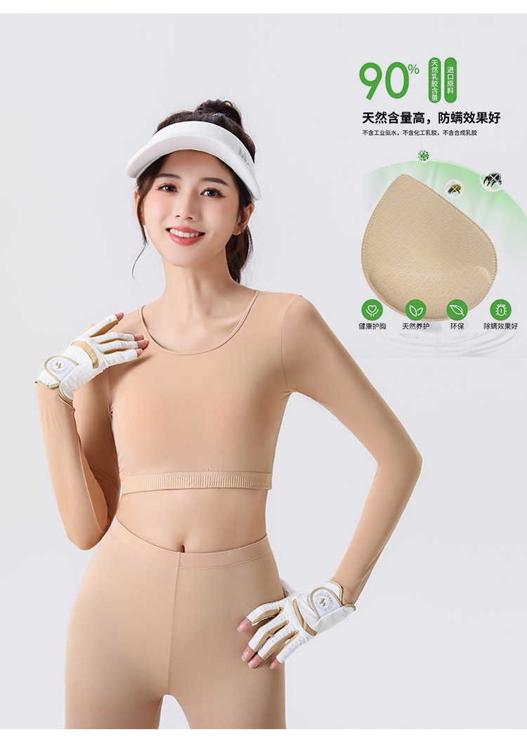 내 골프 선 스크린 스킨 컬러 스포츠베이스 셔츠 여성용 여름 긴팔 슬림 하프 섹션 라텍스 가슴 패드