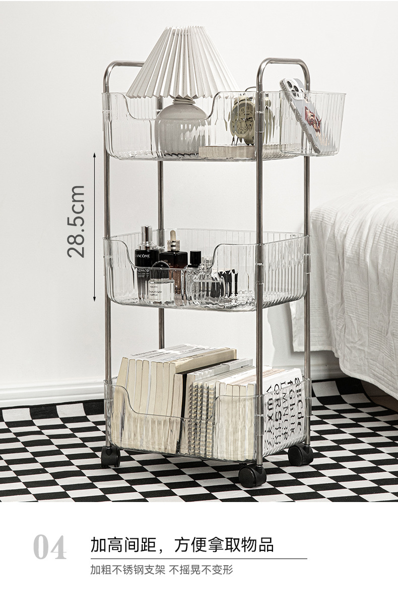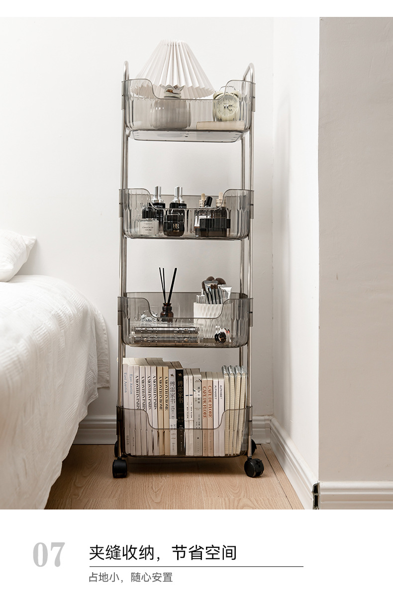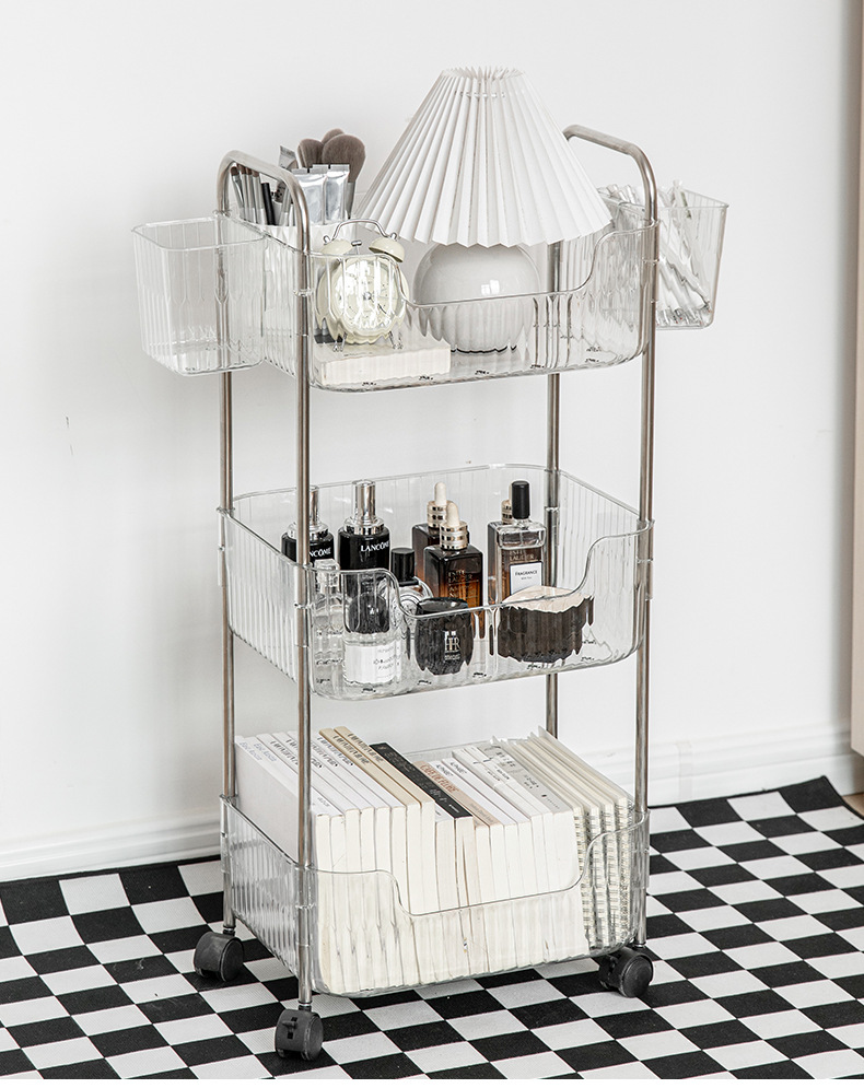 투명한 아크릴 카트 간식 화장품 침대 옆 보관 다층 욕실 모바일 침실 보관 랙스토어 가기