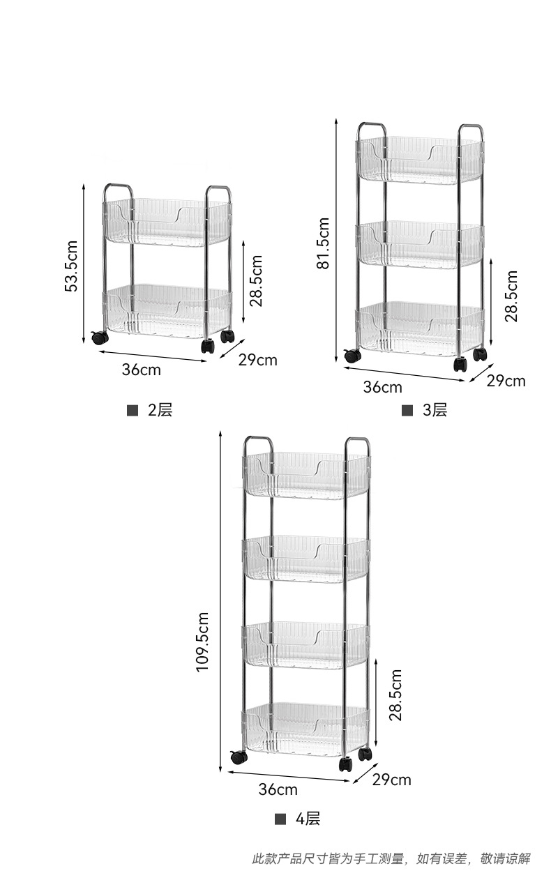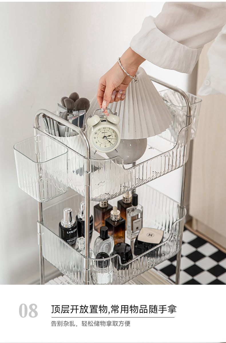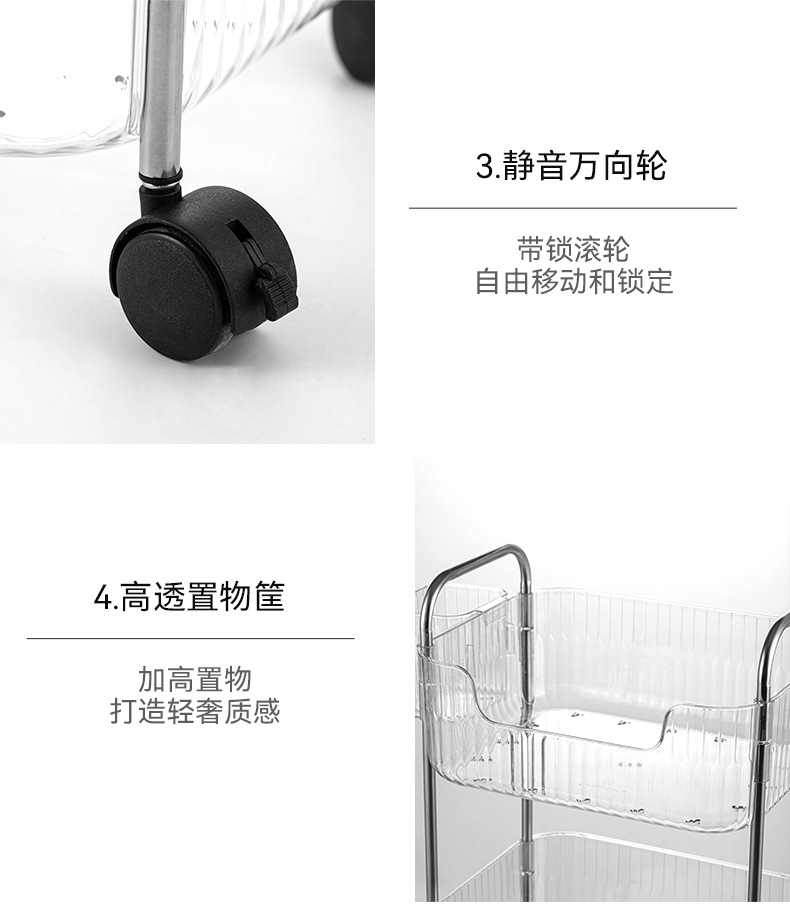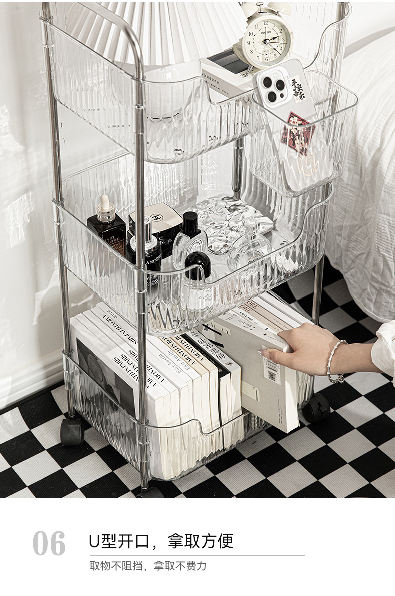 투명한 아크릴 카트 간식 화장품 침대 옆 보관 다층 욕실 모바일 침실 보관 랙스토어 가기