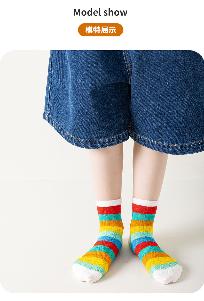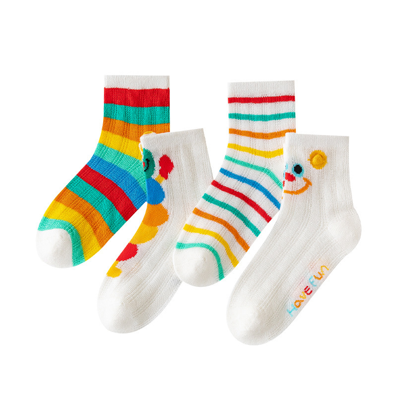 봄과 여름 새로운 무지개 애벌레 대형 메쉬 남성과 여성 양말 양말면 양말 만화 땀 흡수성 통기성 어린이 양말
