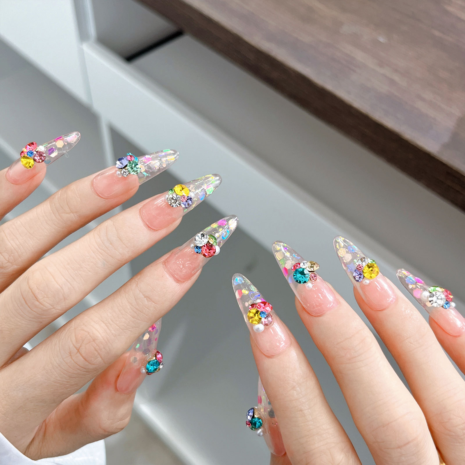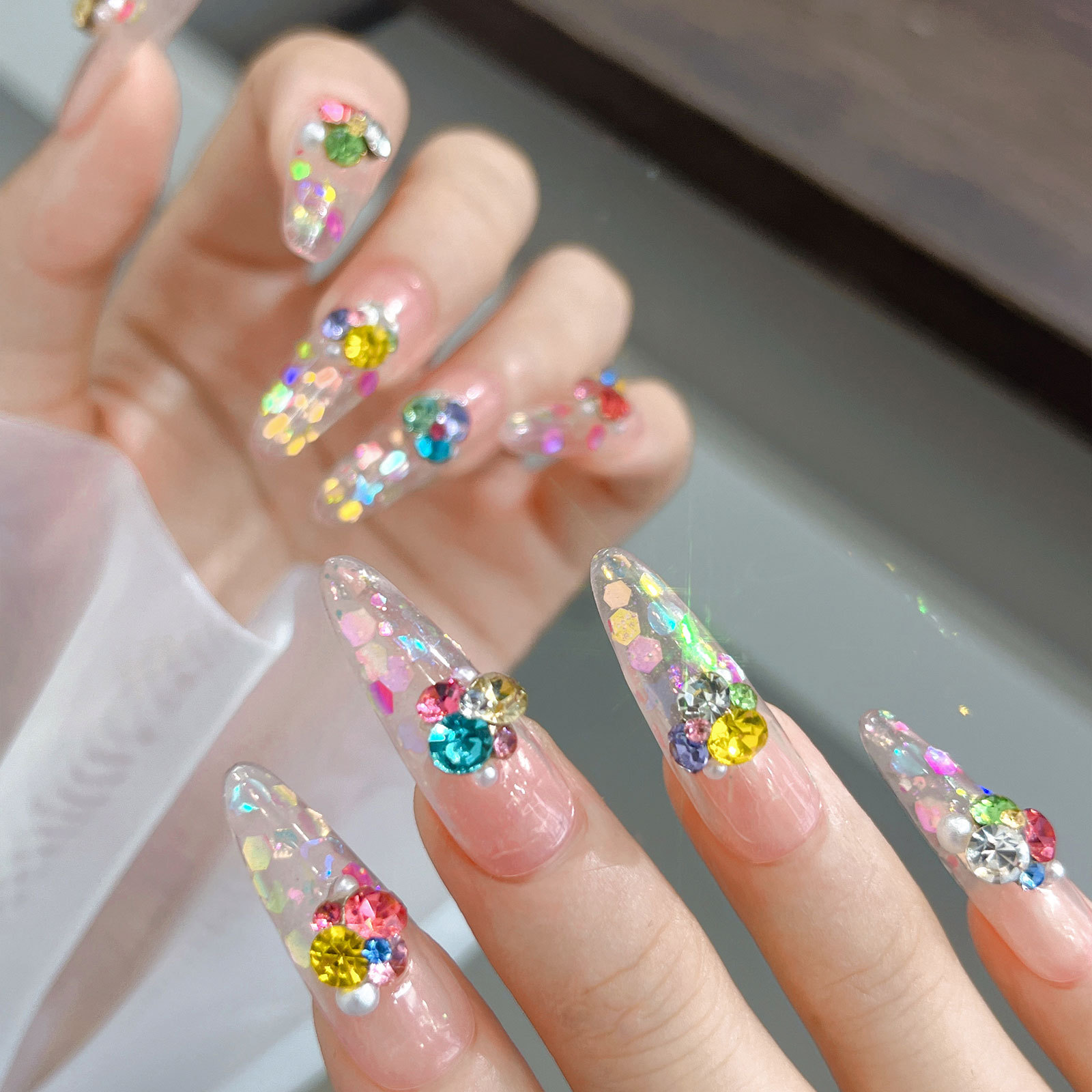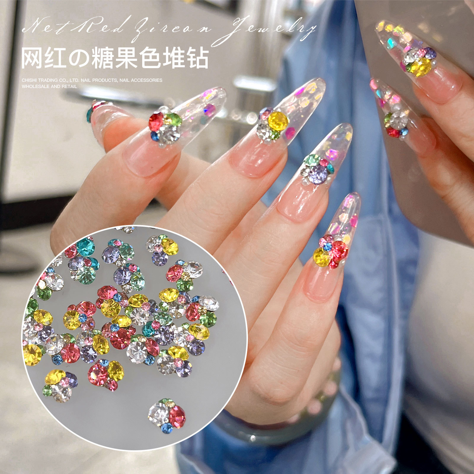 그물 빨간 사탕 거품 완성 된 더미 드릴 네일 아트 보석 새로운 플래시 컬러 파일 드릴 네일 장식 액세서리 도매스토어 가기