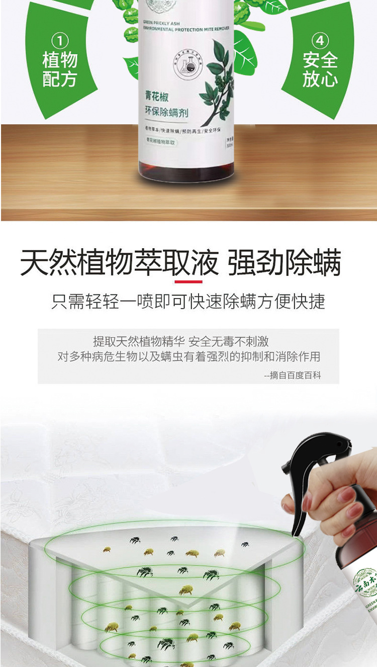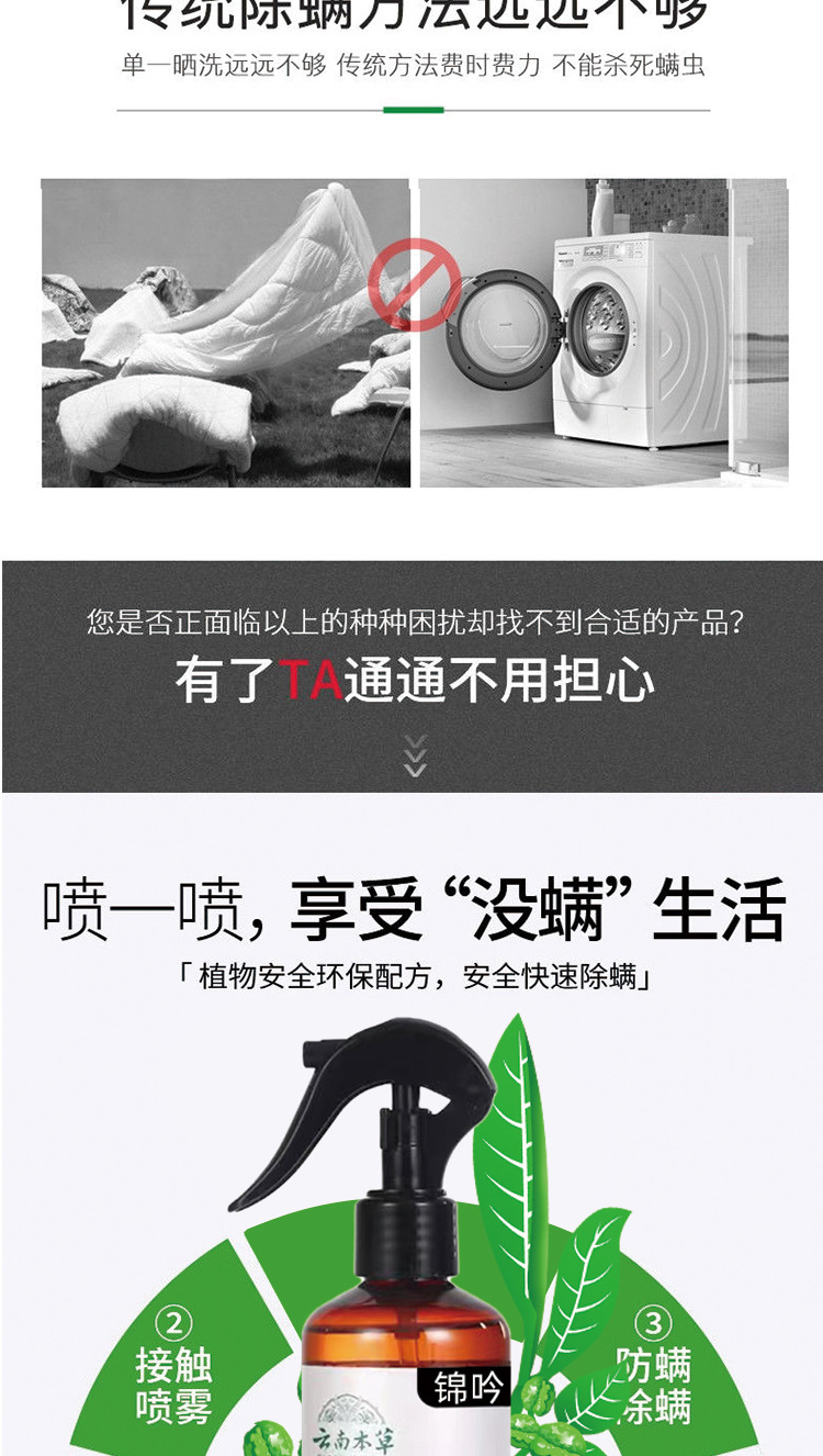 높은 농축 진드기 제거 스프레이 윈난 허브 녹색 후추 침대 가구 진드기 자동차 소파 무세척 진드기 제거스토어 가기