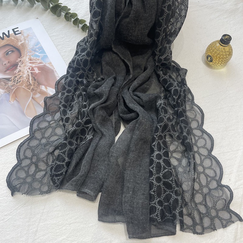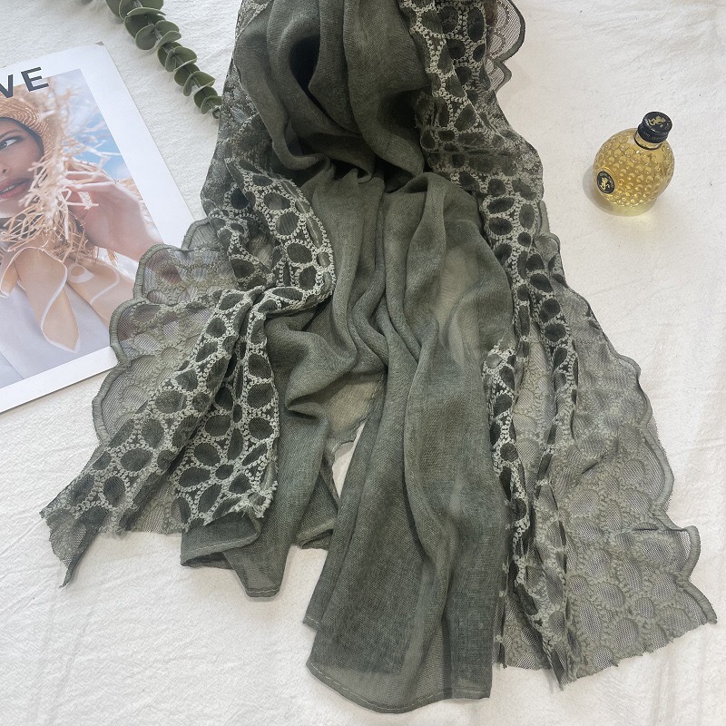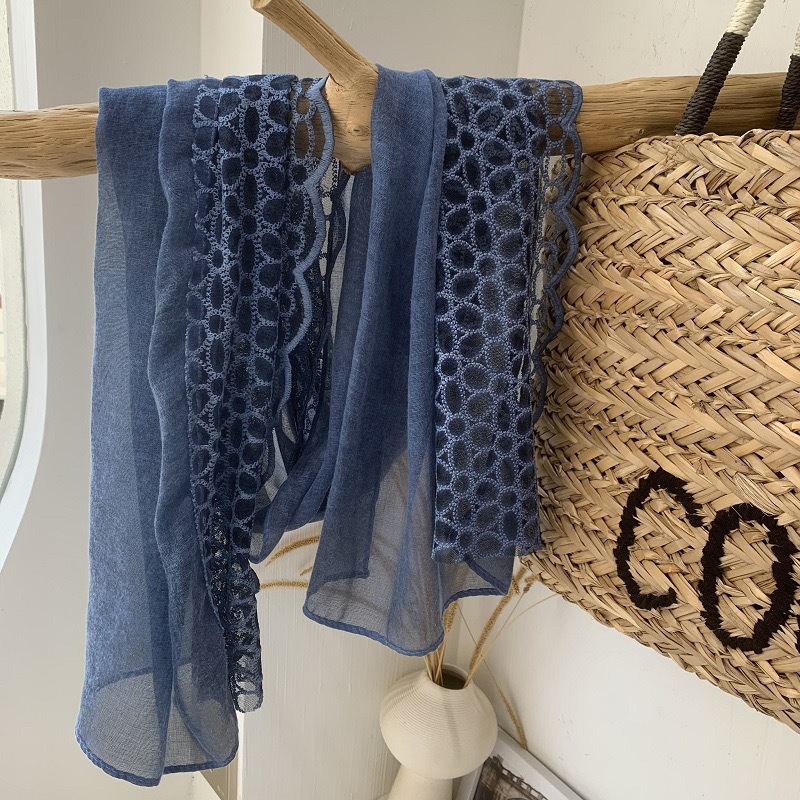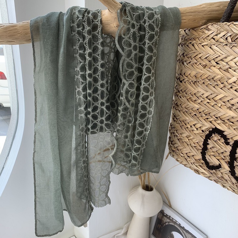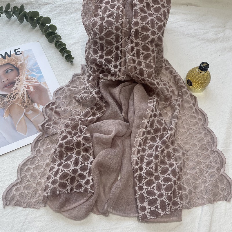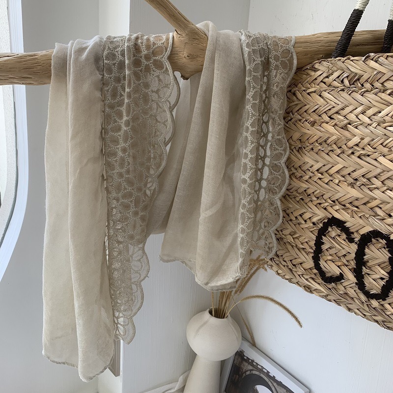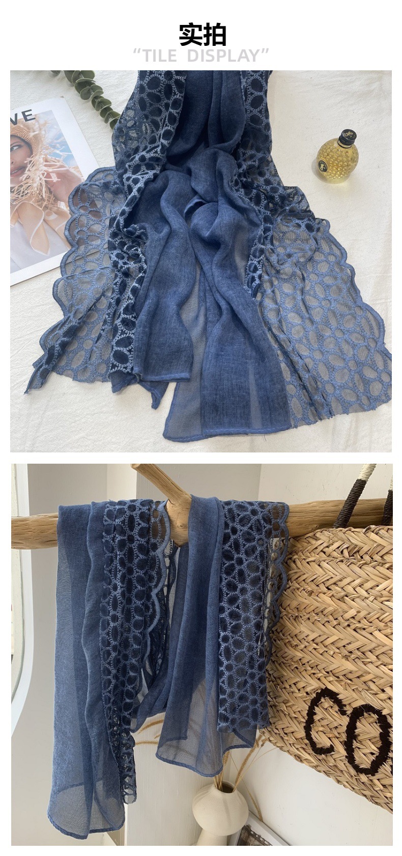 2024 새로운 높은 감각 바느질면 및 린넨 긴 수건 조커 봄과 가을 레이스 스카프 선 스크린 따뜻한 목도리 도매 여성스토어 가기
