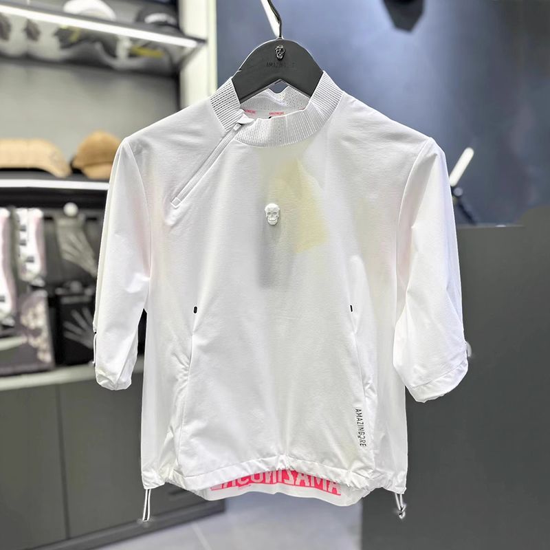 여름 패션 얇은 슬리밍 통기성 문자 기질 세련된 반팔 탑 한국 골프 여성 24 새로운 스타일스토어 가기