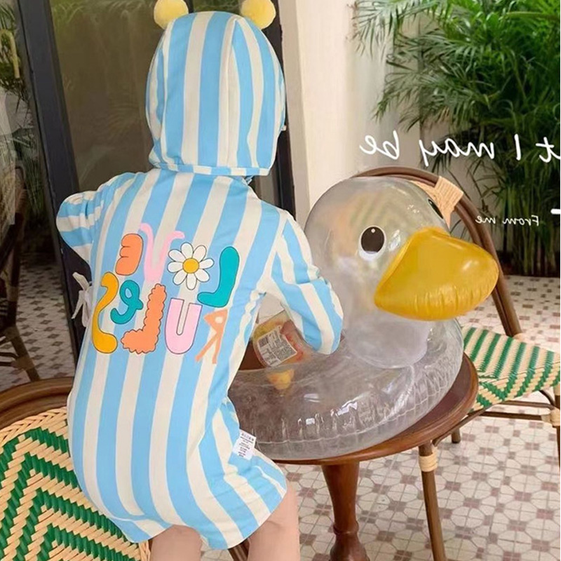 여름 어린이 긴팔 선 스크린 수영복 소년 소녀를위한 줄무늬 원피스 수영복 베이비 비치 수영 빠른 건조 옷 트렌디스토어 가기