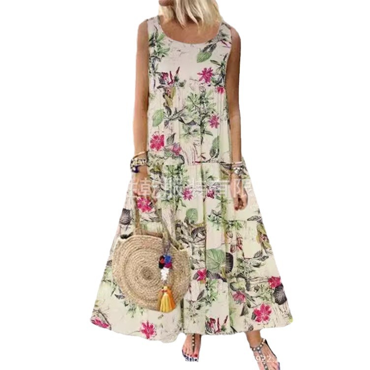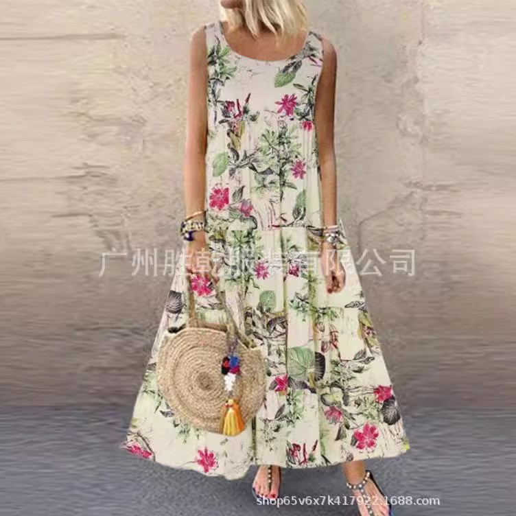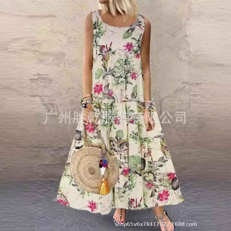 2024 국경을 넘는 아마존 여성의 새로운 플러스 사이즈 유럽과 미국의 독립 방송국 인쇄 기질 통근 원피스 주름
