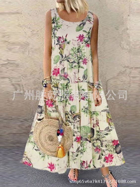 2024 국경을 넘는 아마존 여성의 새로운 플러스 사이즈 유럽과 미국의 독립 방송국 인쇄 기질 통근 원피스 주름스토어 가기