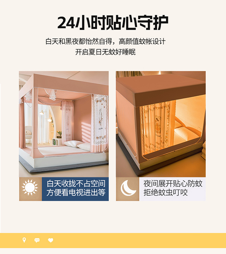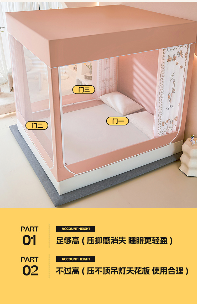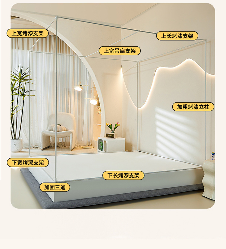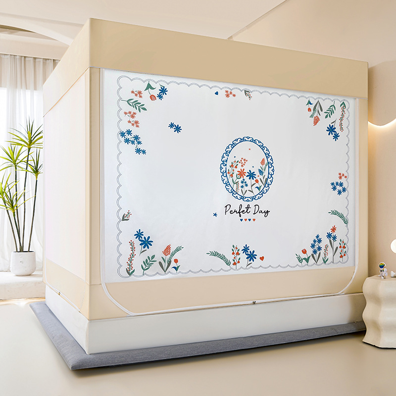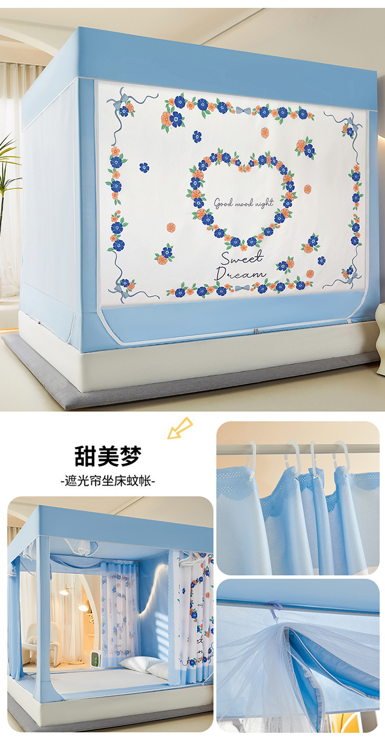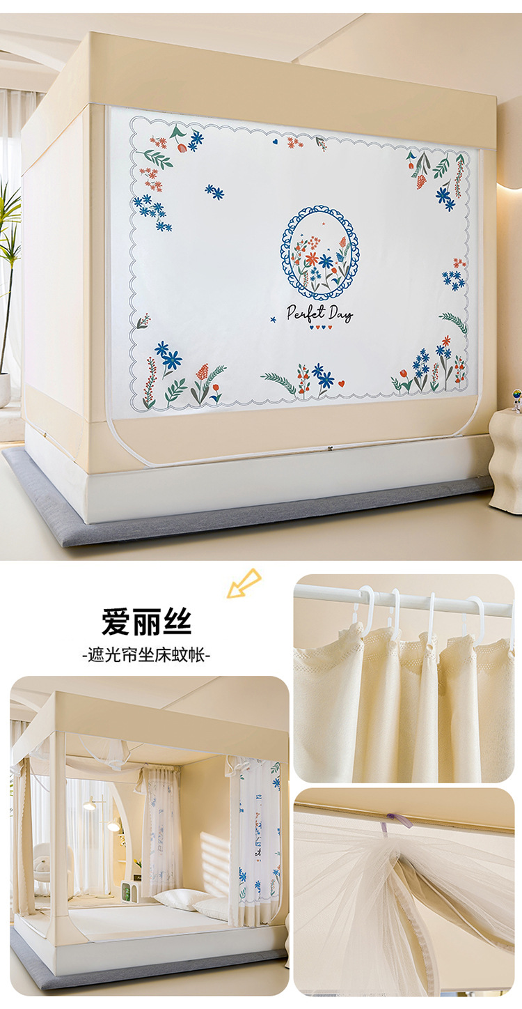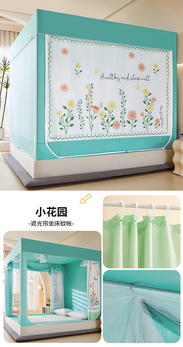 새로운 앉아있는 침대 음영 모기장 몽골 3 도어 가정용 침대 커튼 완전히 닫힌 앞 유리 자체 연결 브래킷 다시 아래로스토어 가기