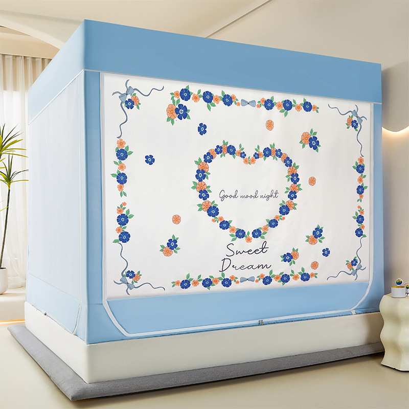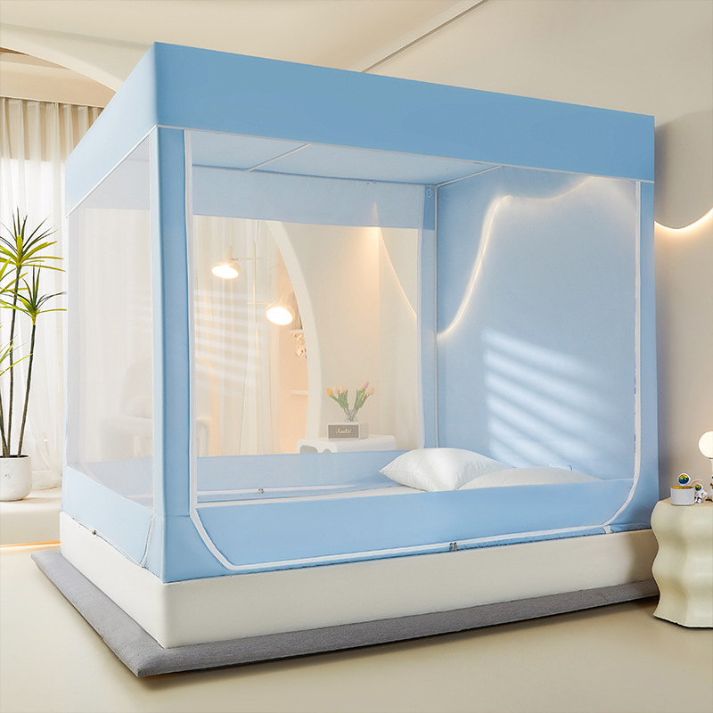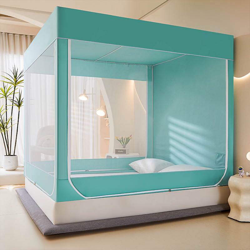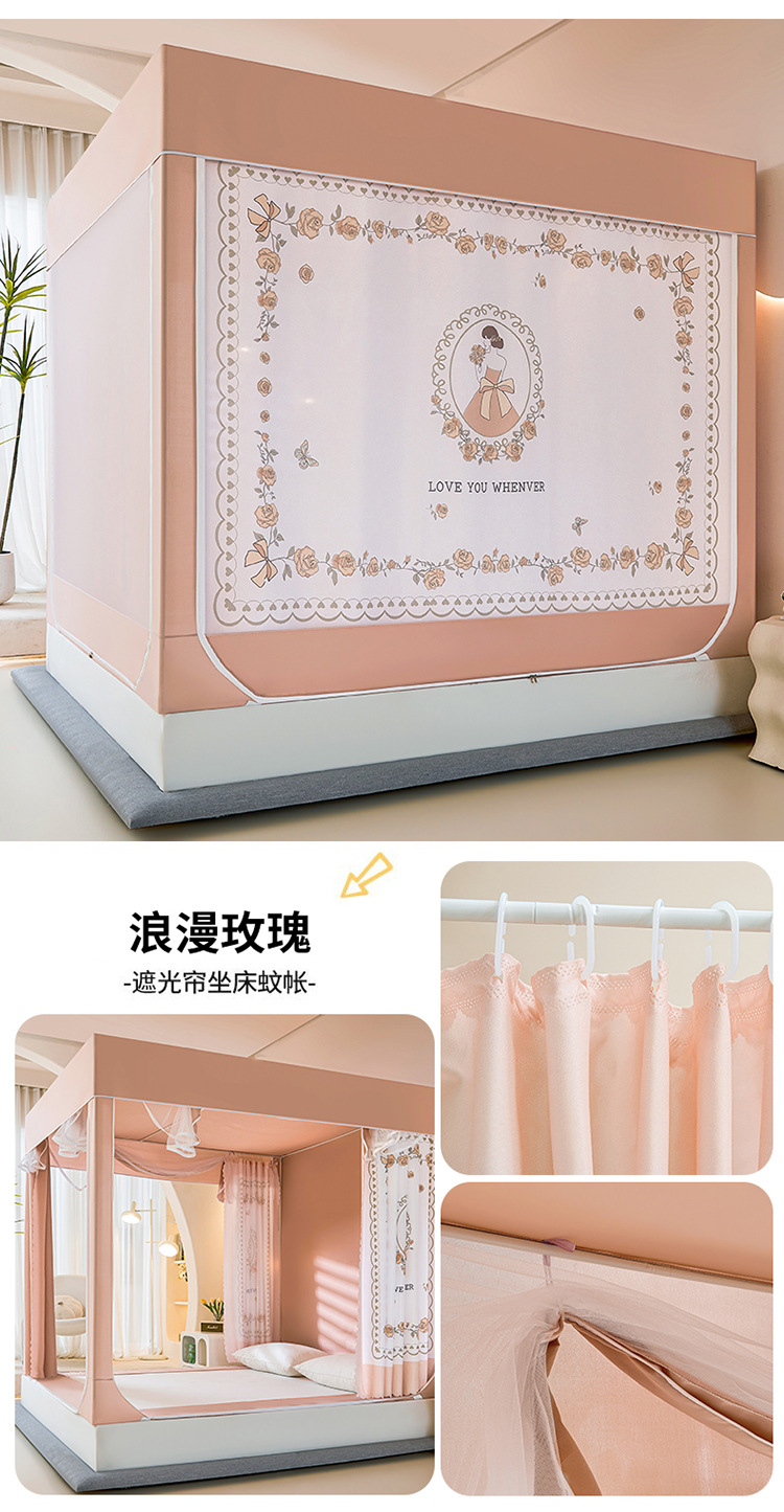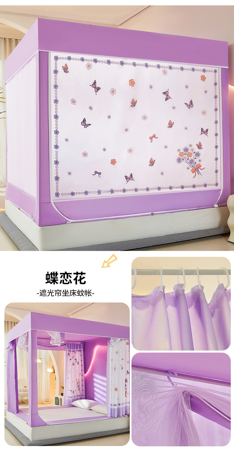 새로운 앉아있는 침대 음영 모기장 몽골 3 도어 가정용 침대 커튼 완전히 닫힌 앞 유리 자체 연결 브래킷 다시 아래로